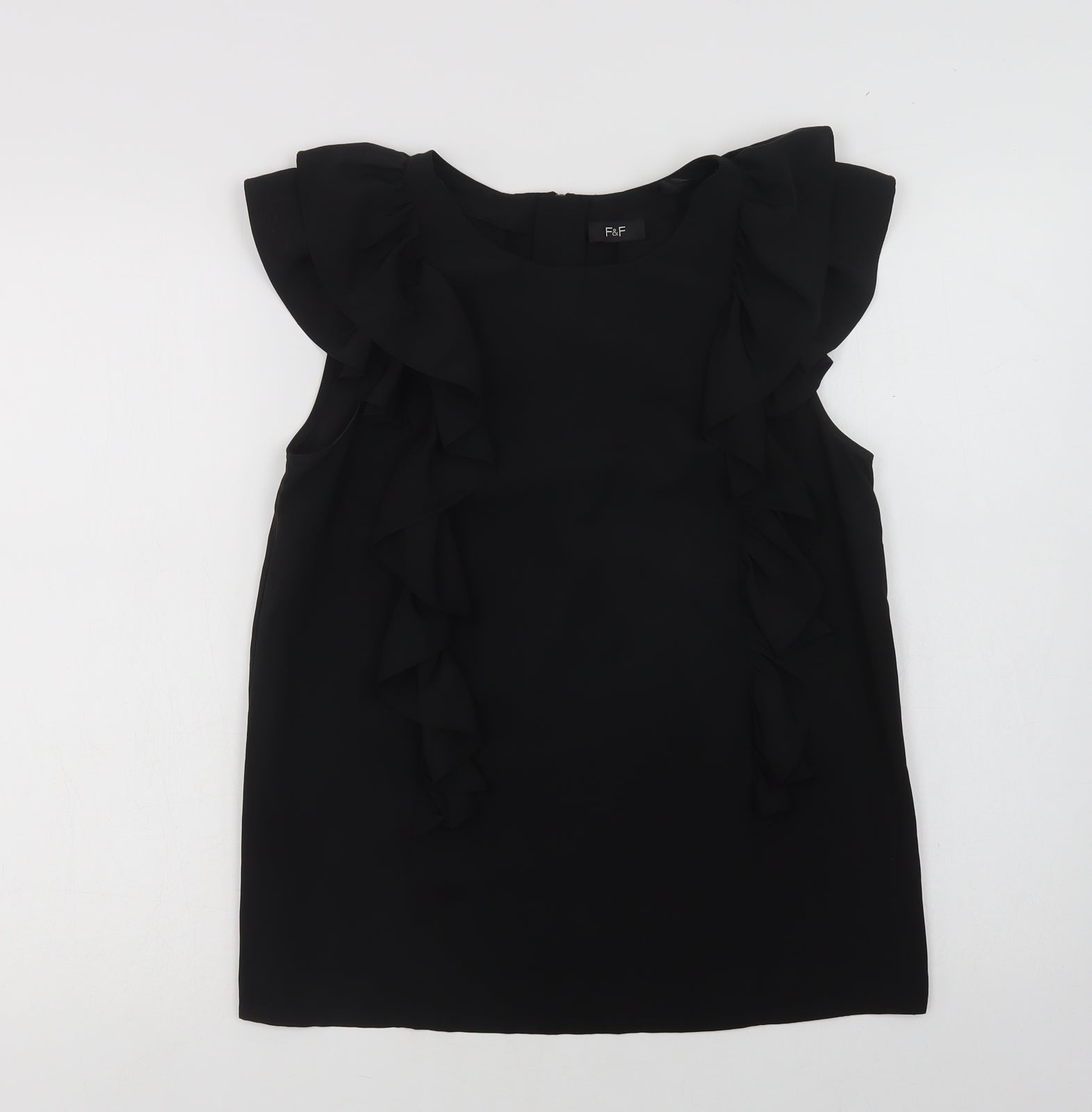 F&F Womens Black Polyester Basic Blouse Size 10 Round Neck