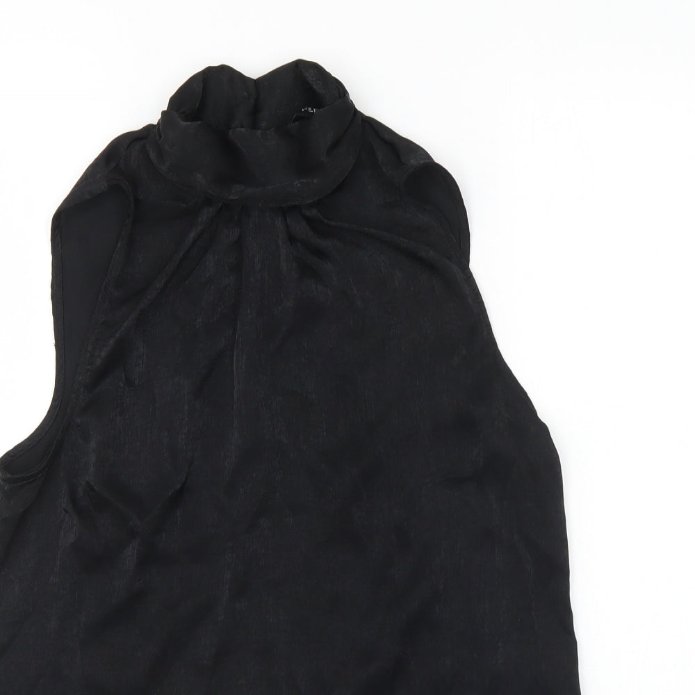 F&F Womens Black Polyester Basic Blouse Size 6 High Neck