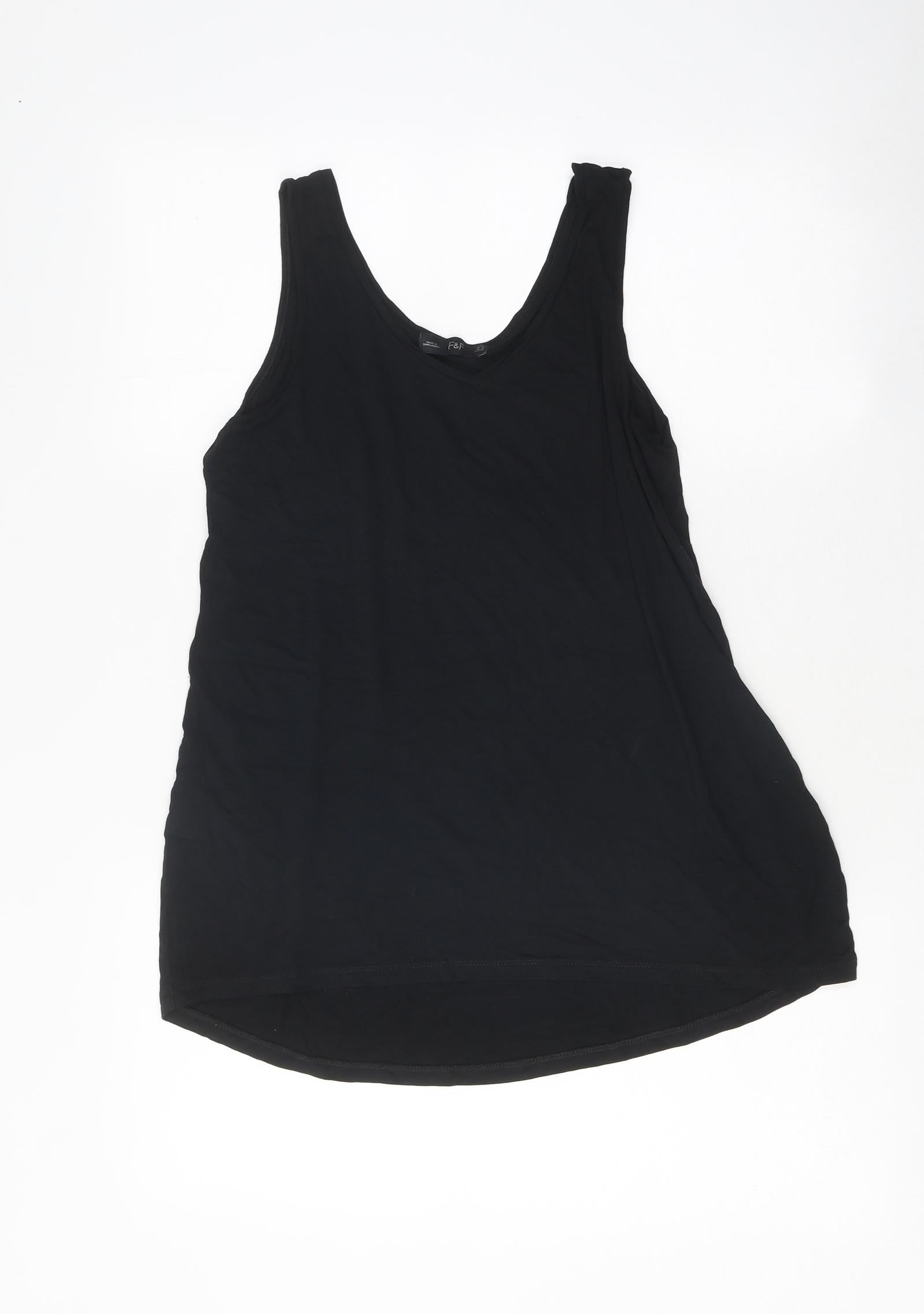 F&F Womens Black Polyester Basic Tank Size 10 V-Neck