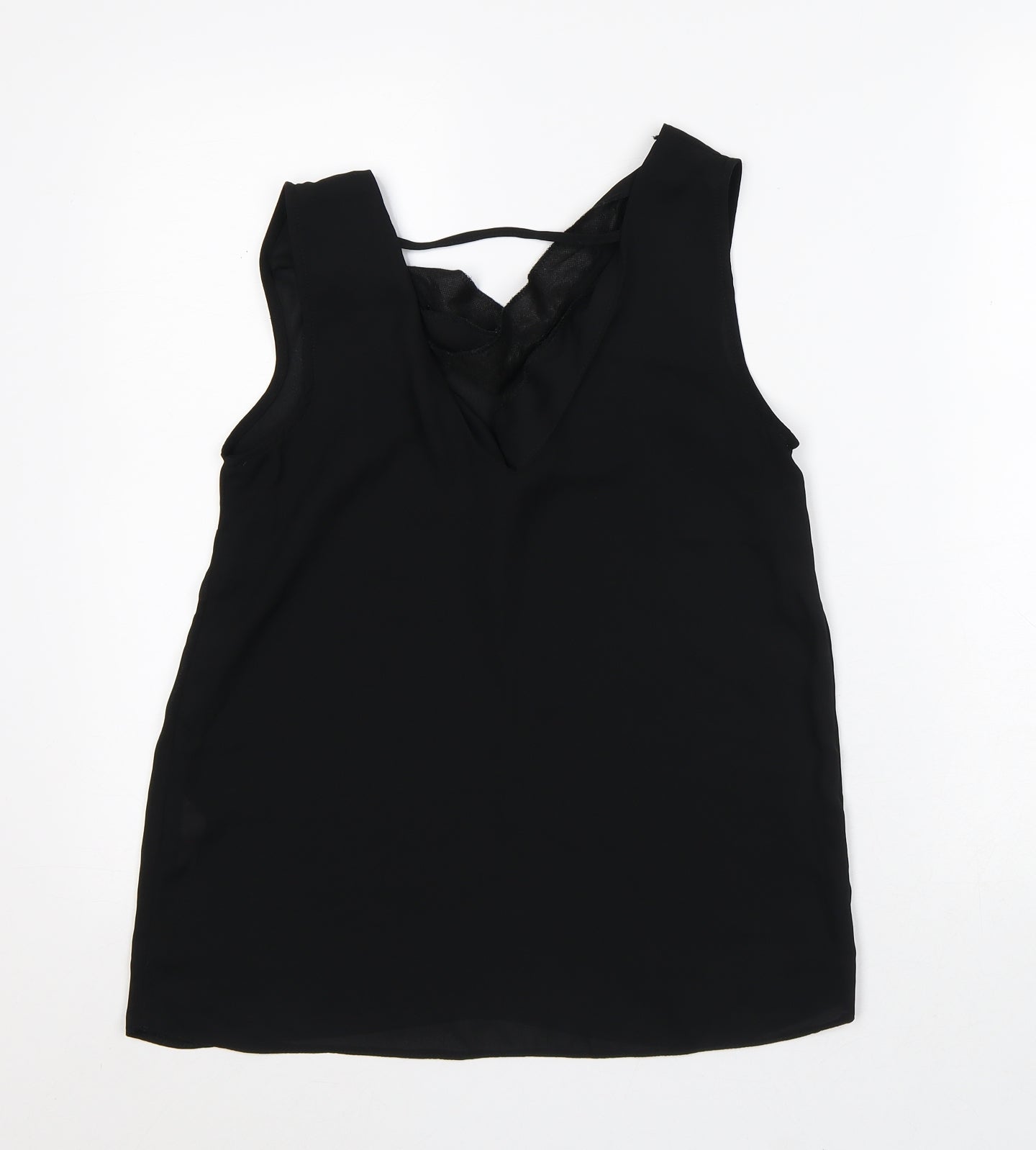 F&F Womens Black Polyester Basic Tank Size 6 V-Neck