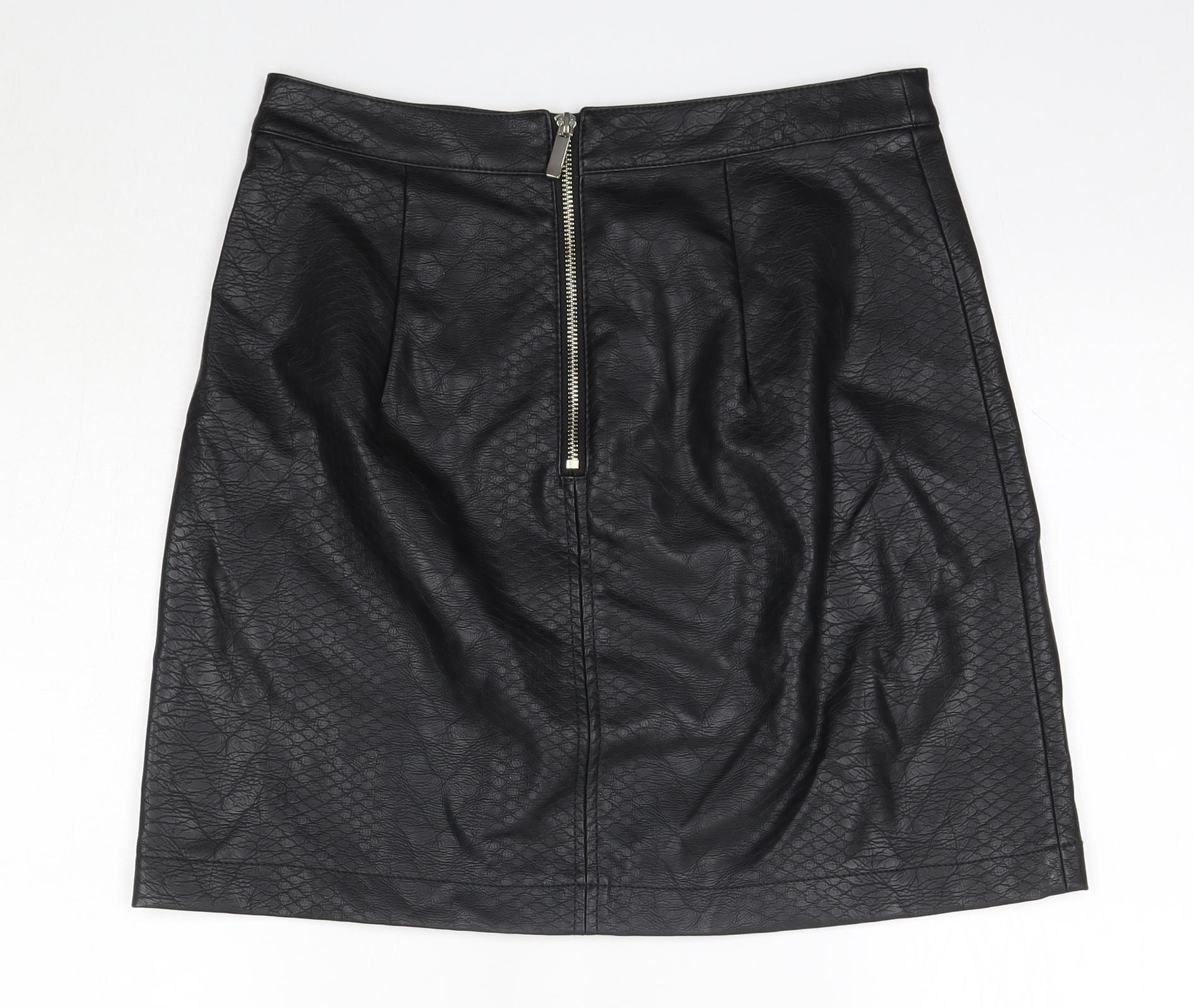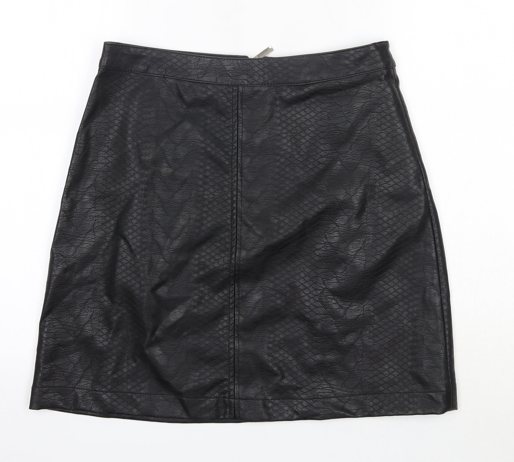 F&F Womens Black Polyurethane A-Line Skirt Size 8