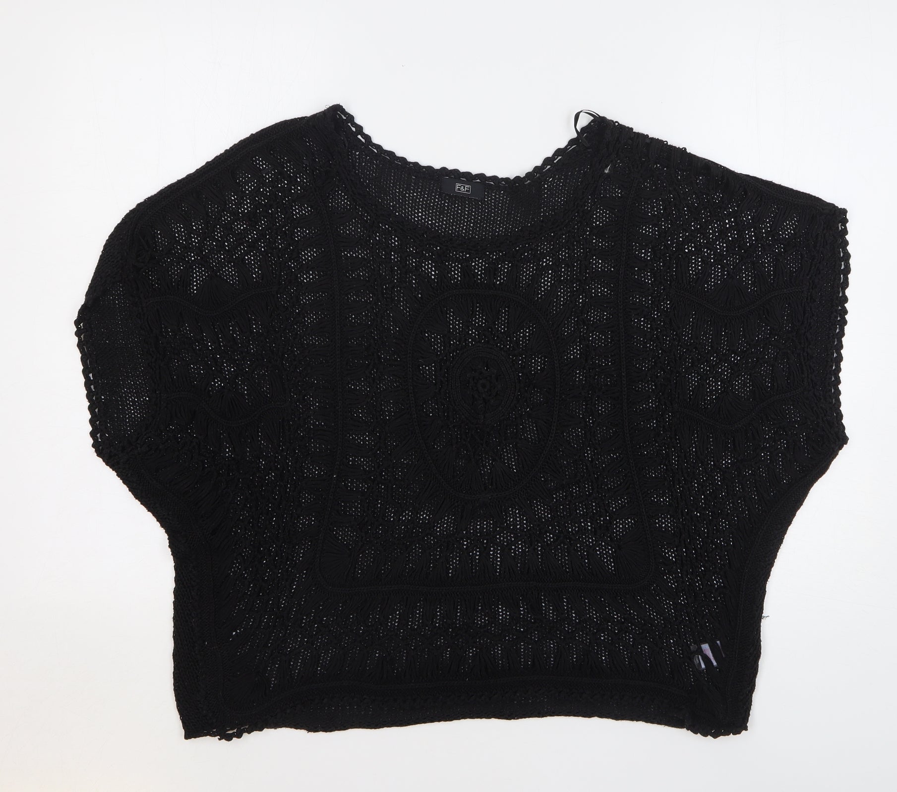 F&F Womens Black Round Neck Acrylic Pullover Jumper Size 14
