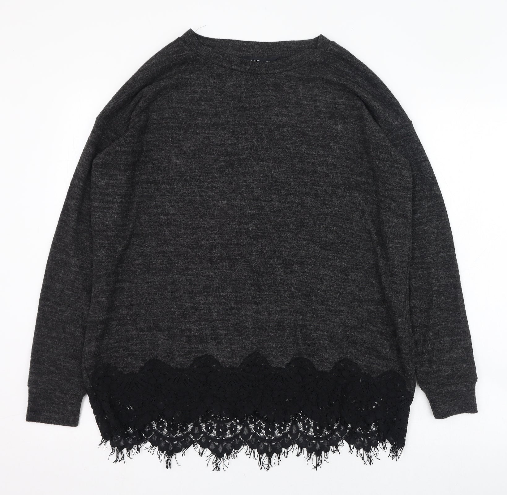 F&F Womens Black Round Neck Polyester Pullover Jumper Size 10