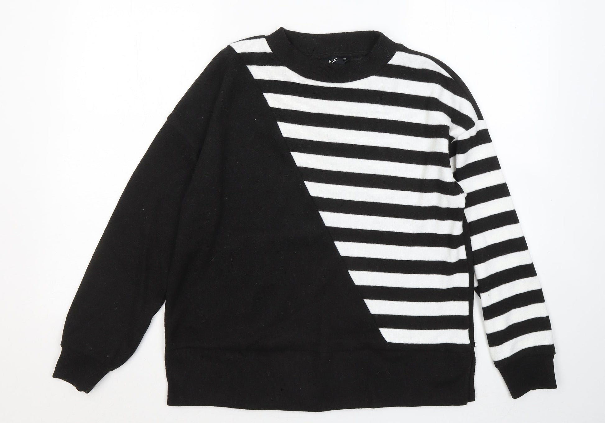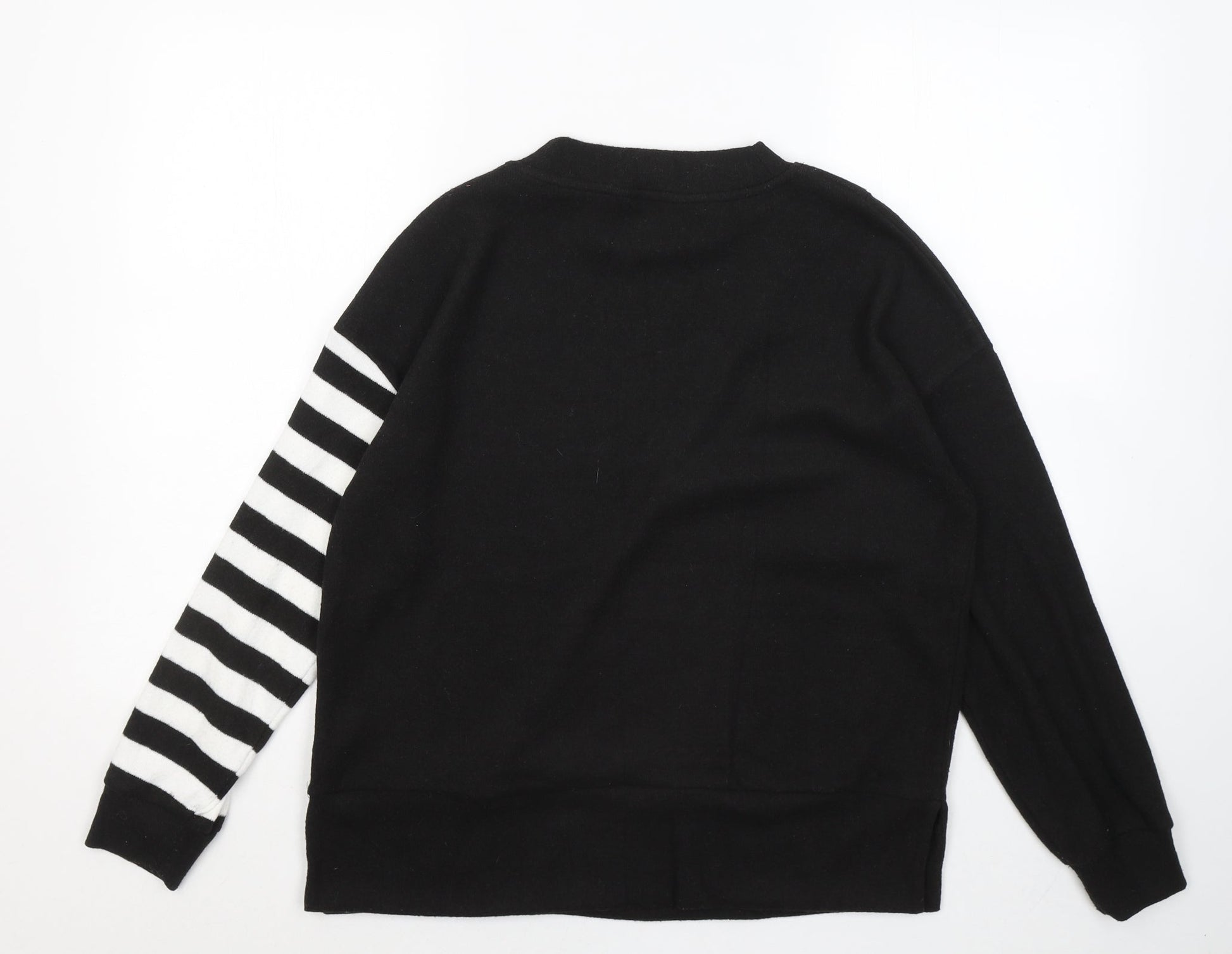 F&F Womens Black Round Neck Striped Polyester Pullover Jumper Size S