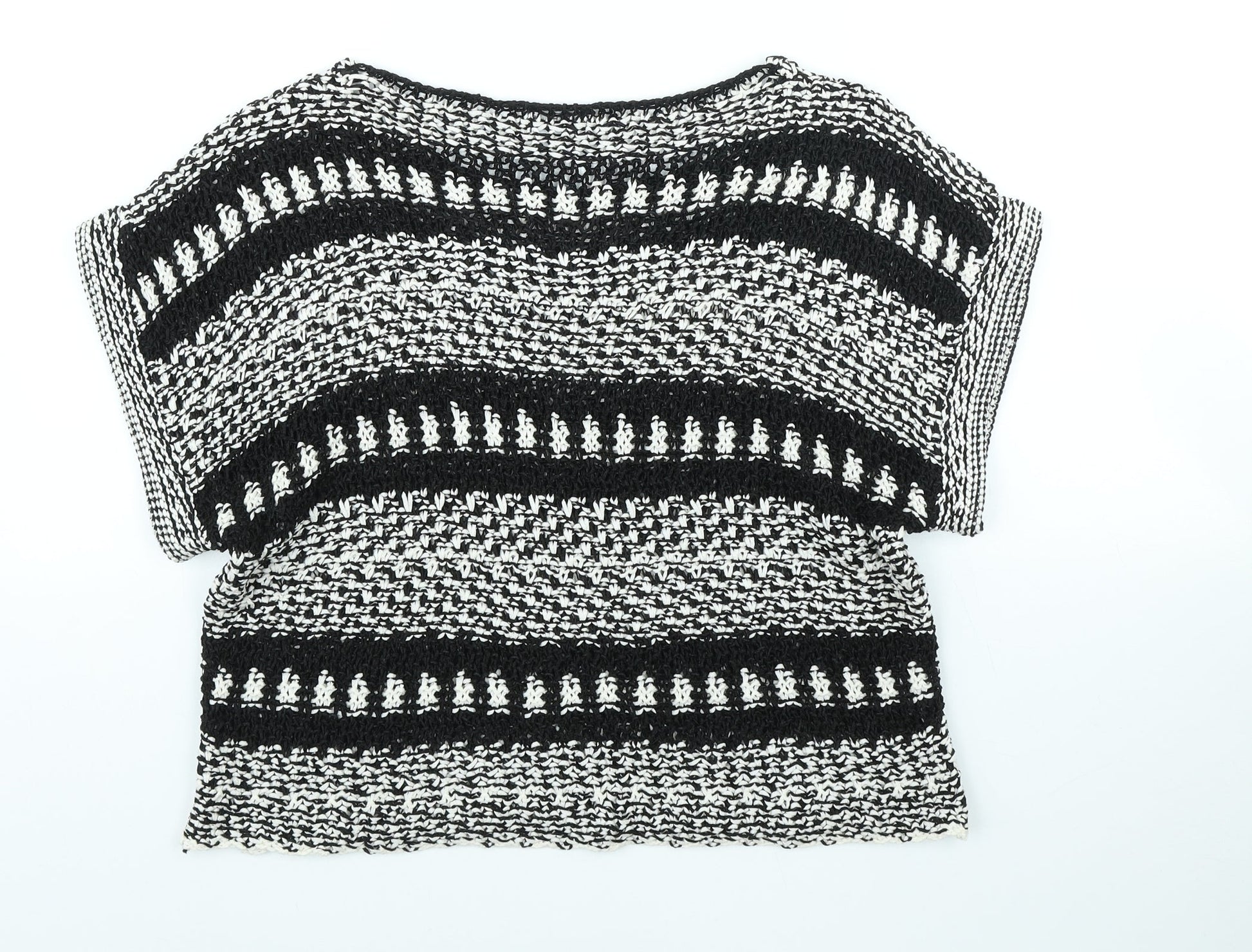 F&F Womens Black Scoop Neck Striped Cotton Pullover Jumper Size M