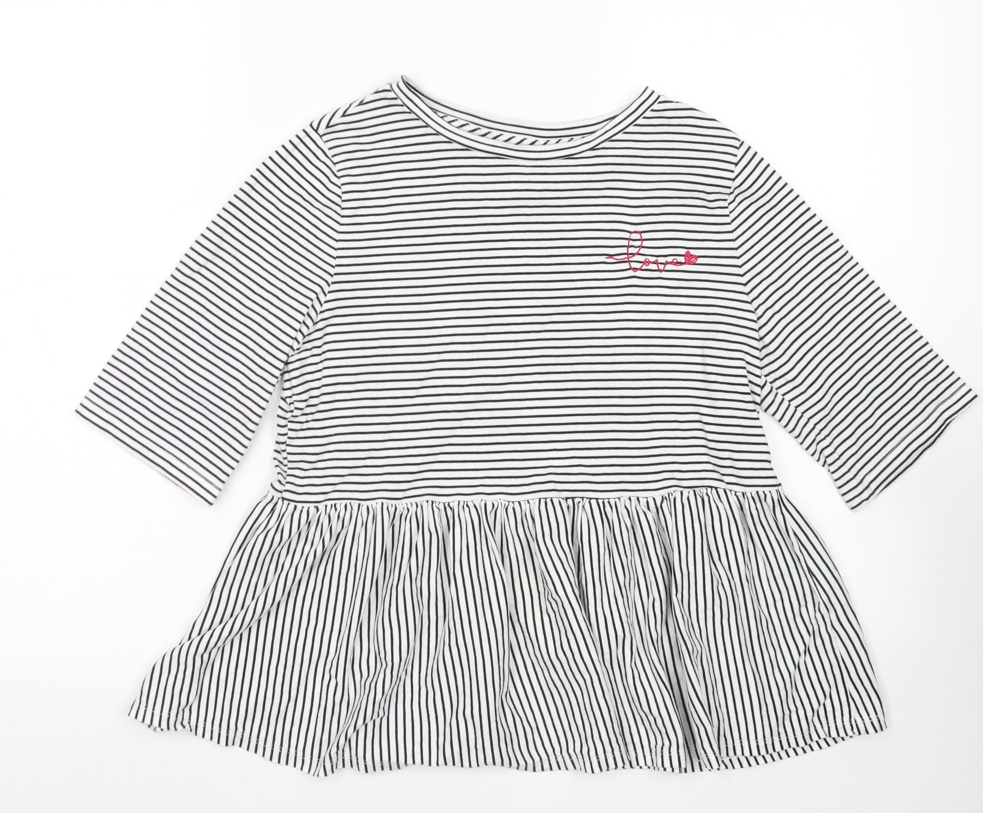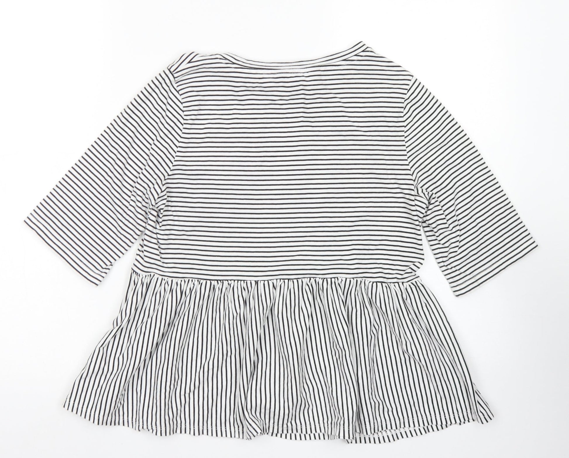 F&F Womens Black Striped Cotton Basic T-Shirt Size 6 Collared - Peplum