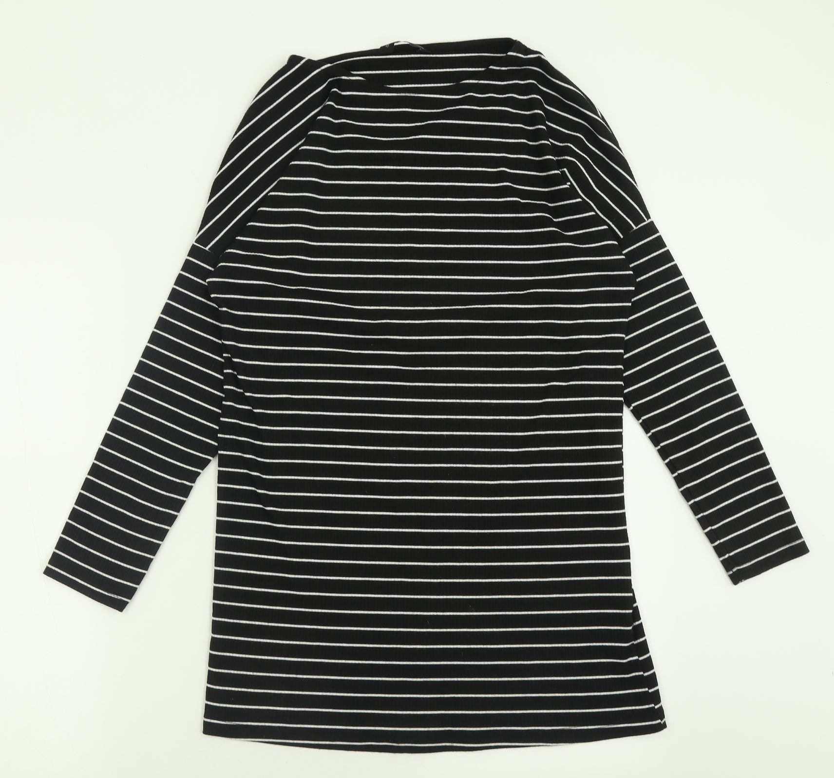 F&F Womens Black Striped Polyester A-Line Size 8 Crew Neck Pullover