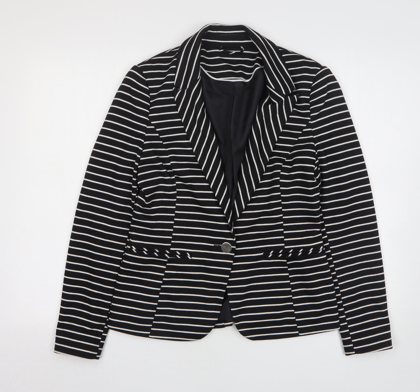 F&F Womens Black Striped Polyester Jacket Blazer Size 10