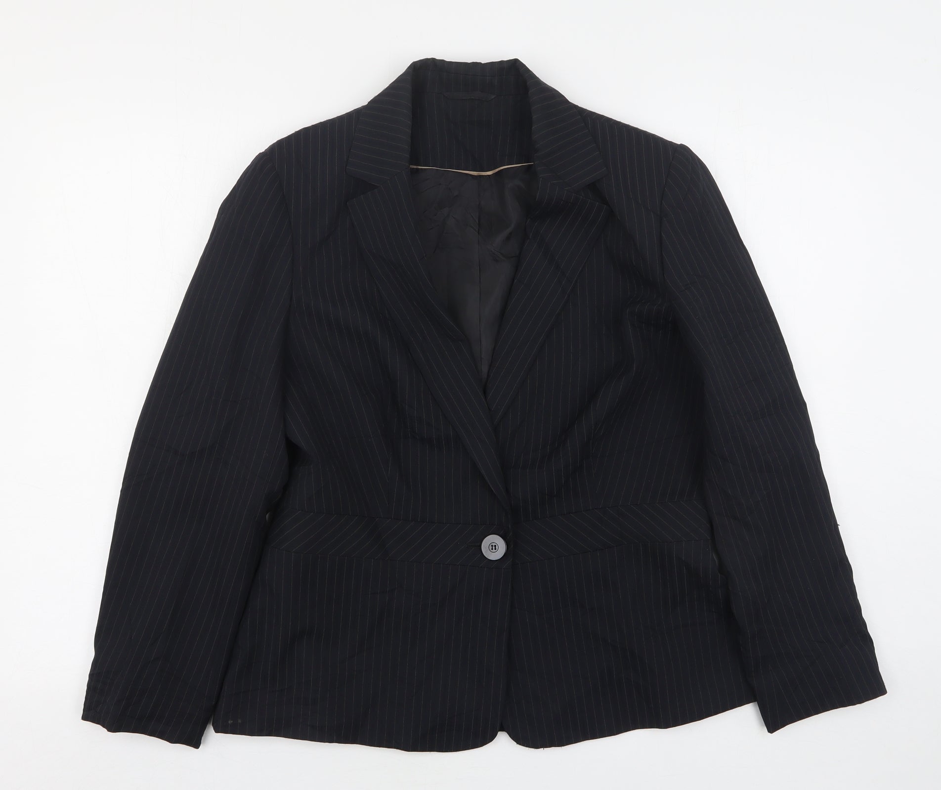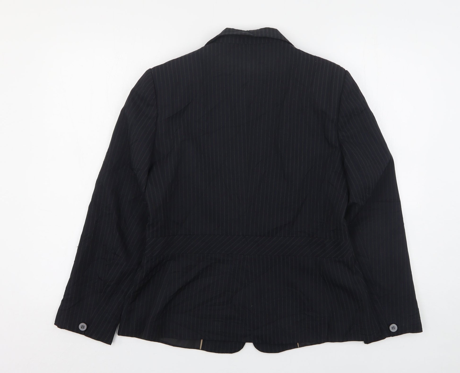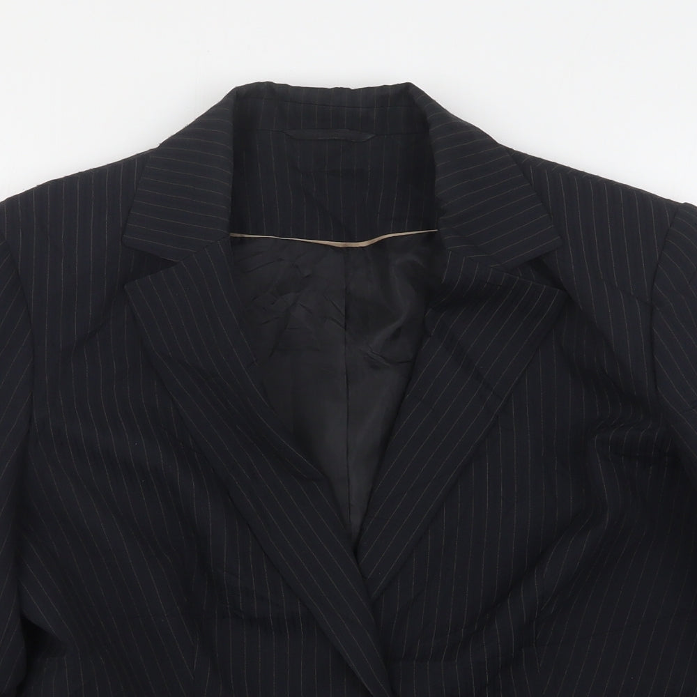 F&F Womens Black Striped Polyester Jacket Suit Jacket Size 14