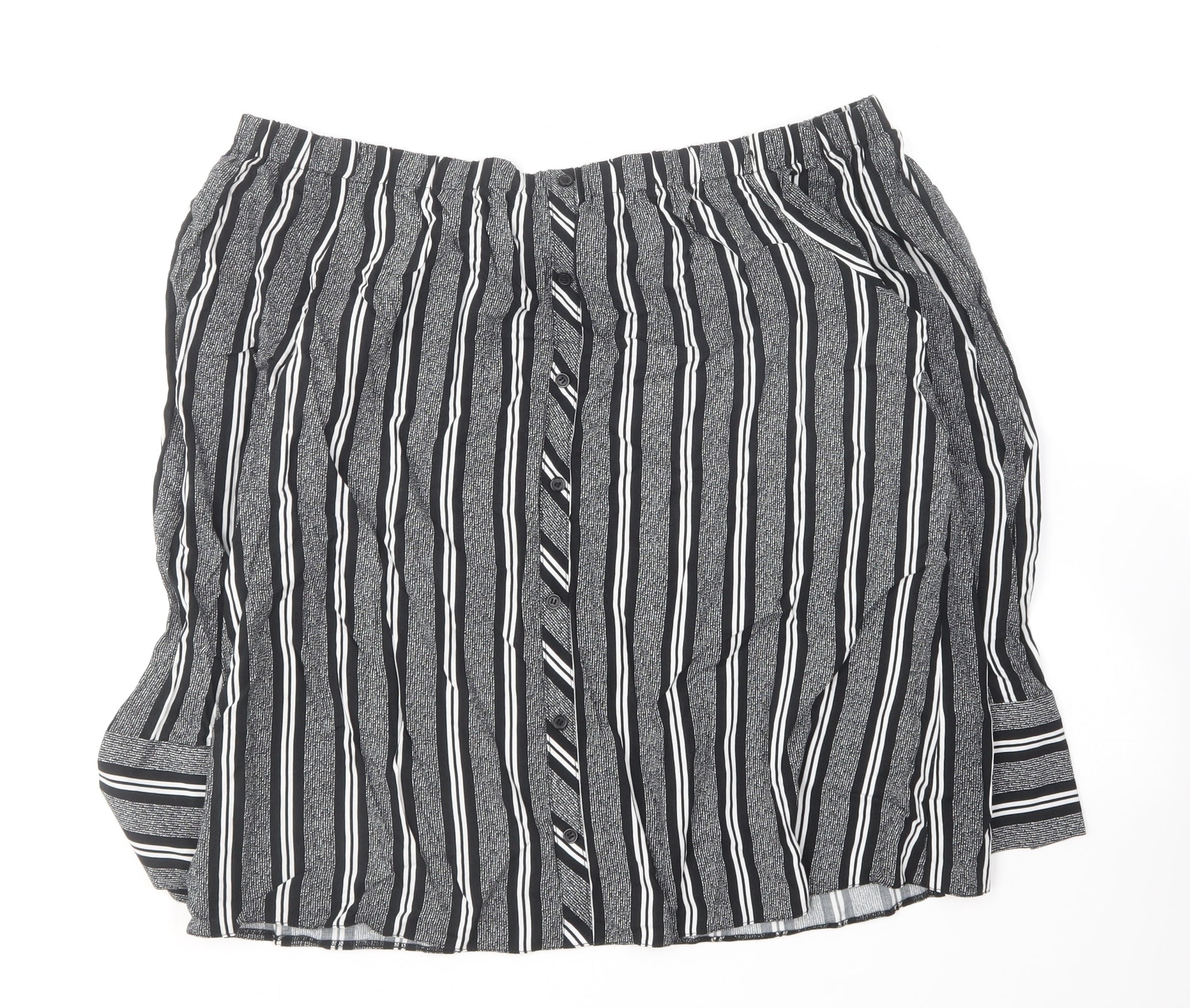 F&F Womens Black Striped Viscose Basic Blouse Size 14 Off the Shoulder