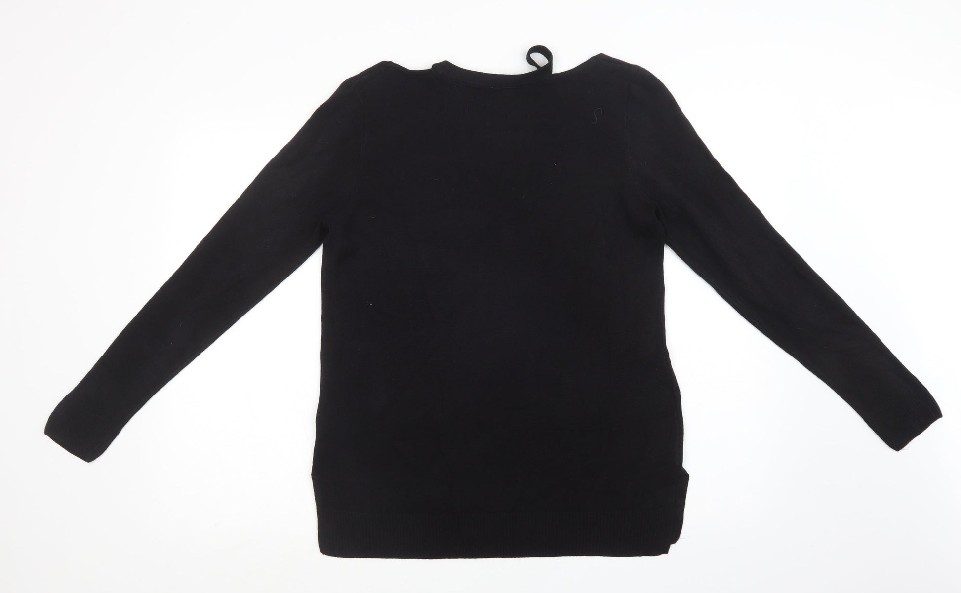 F&F Womens Black V-Neck Acrylic Pullover Jumper Size 12