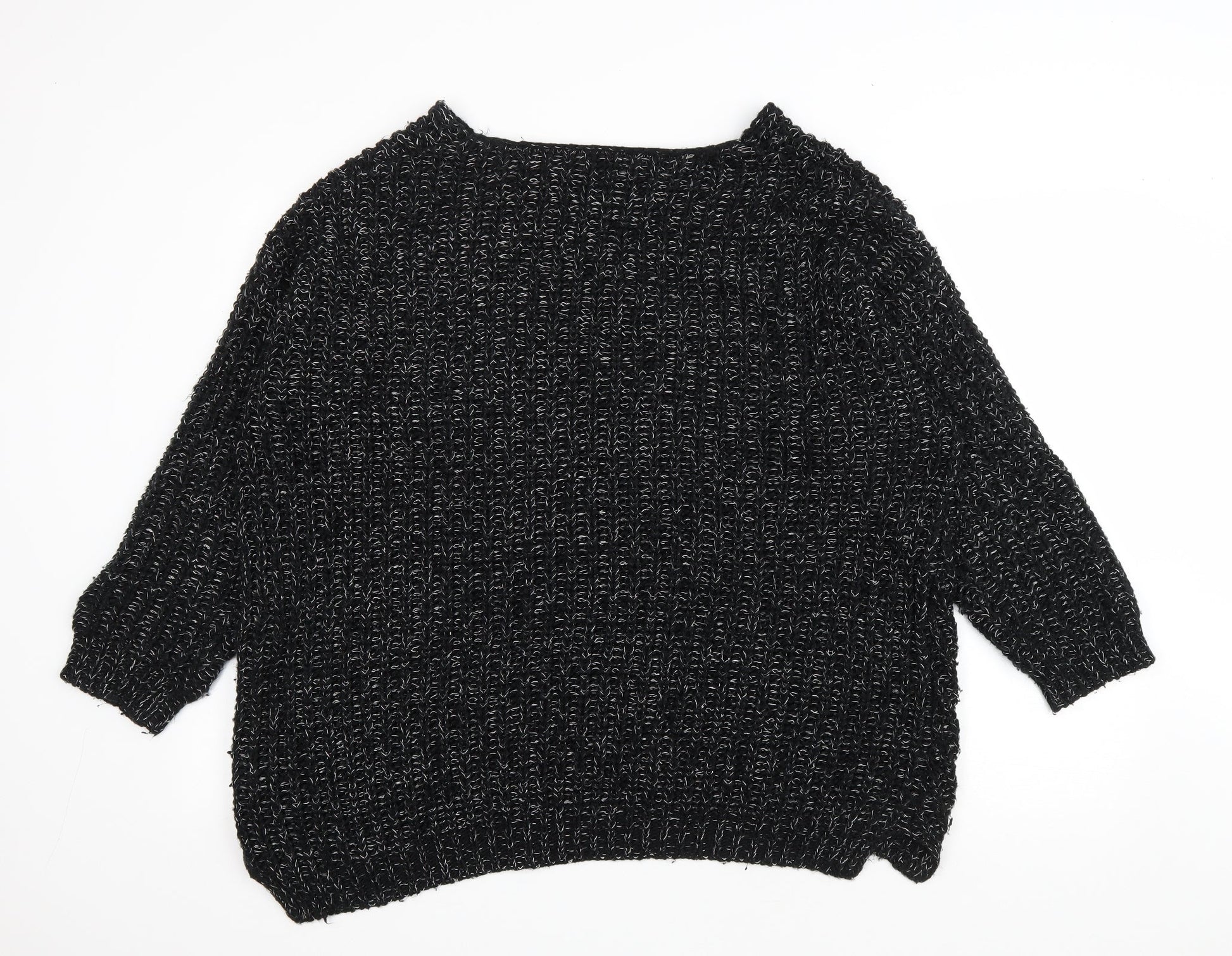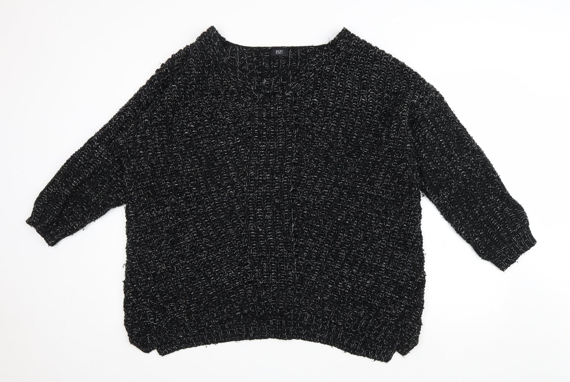 F&F Womens Black V-Neck Acrylic Pullover Jumper Size 14