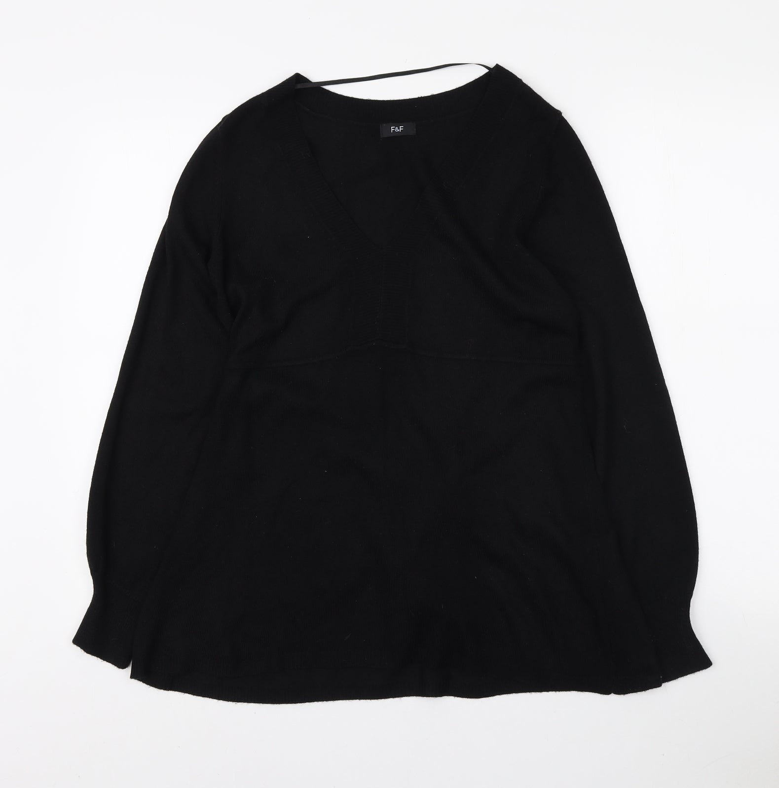 F&F Womens Black V-Neck Acrylic Tunic Jumper Size 12