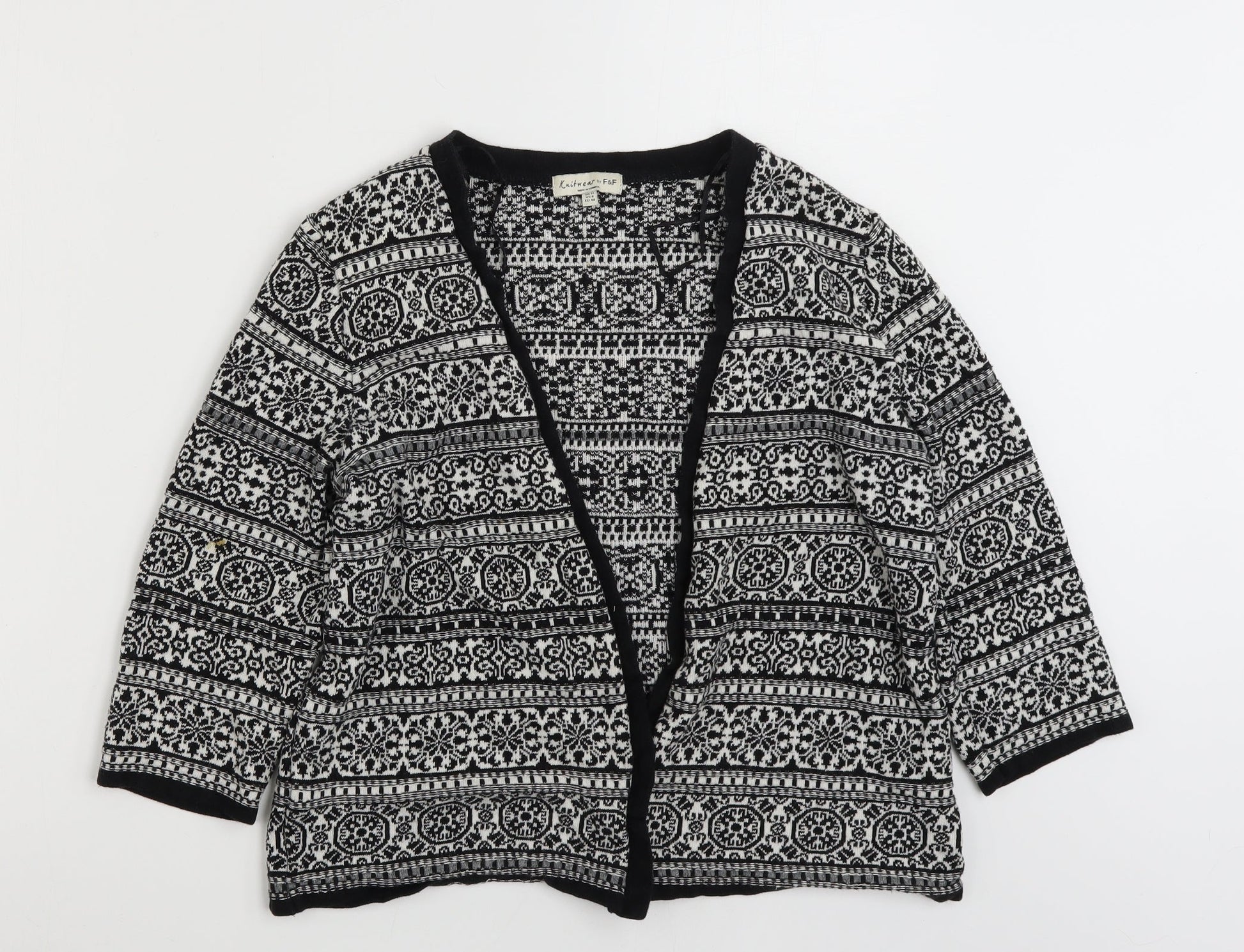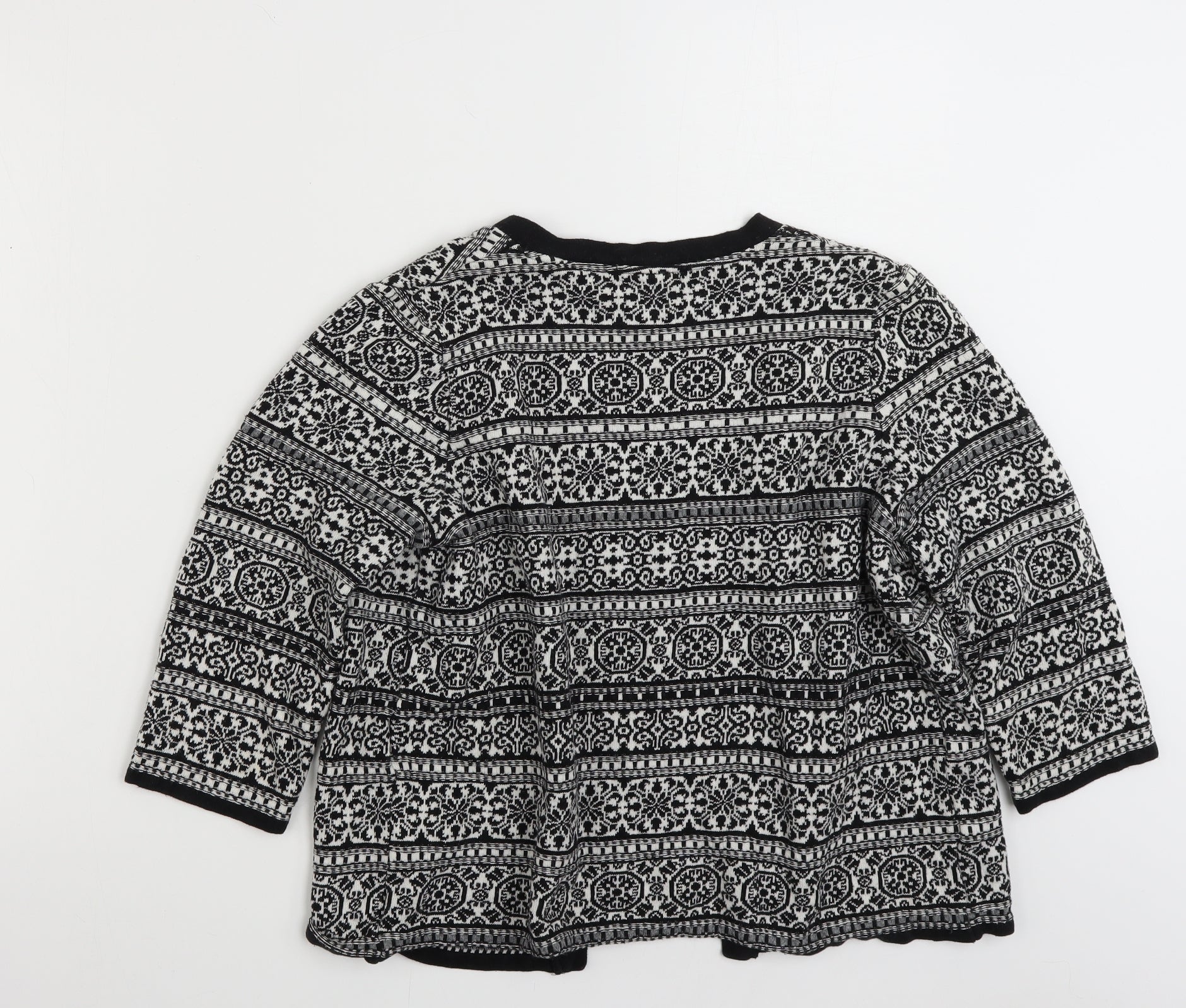 F&F Womens Black V-Neck Geometric Cotton Cardigan Jumper Size 12