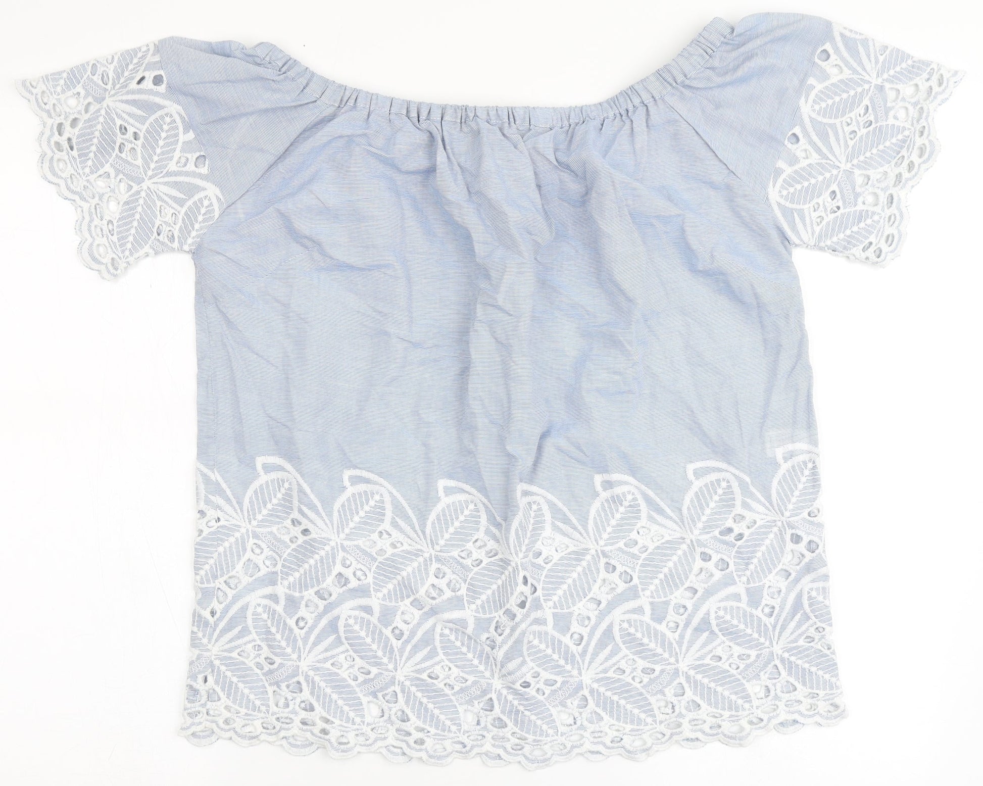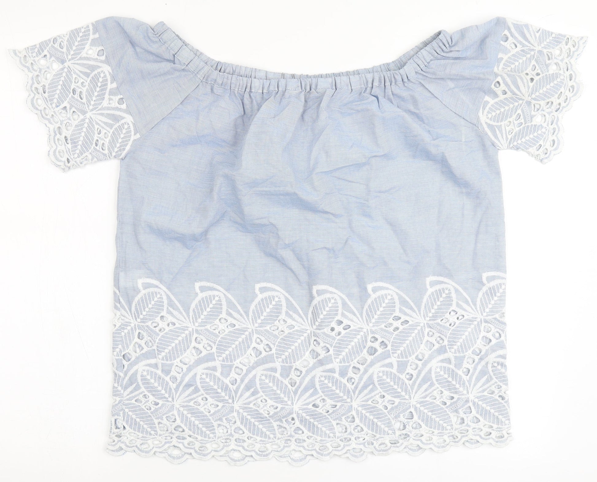 F&F Womens Blue 100% Cotton Basic Blouse Size 8 Off the Shoulder