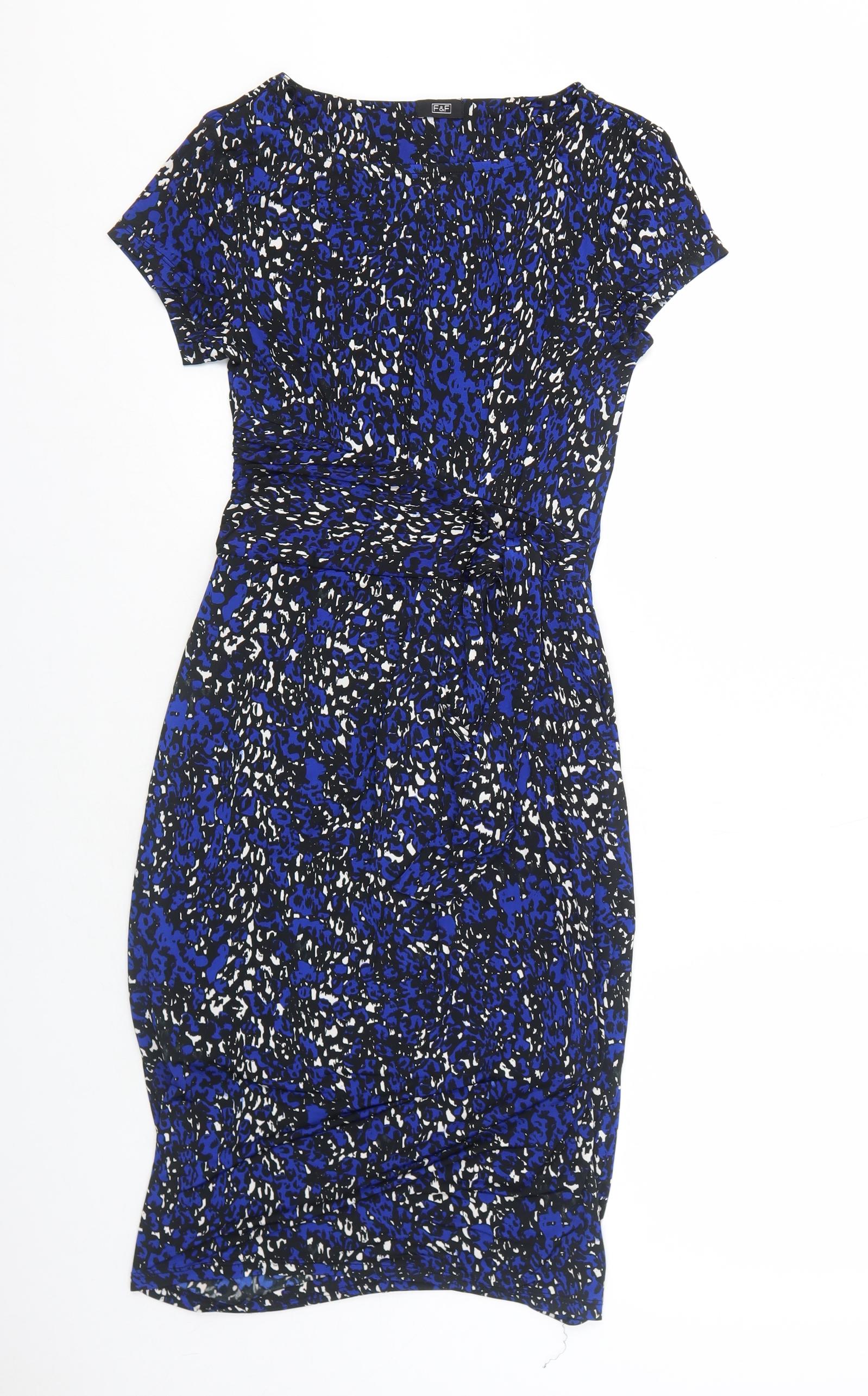 F&F Womens Blue Animal Print Polyester A-Line Size 8 Round Neck Pullover
