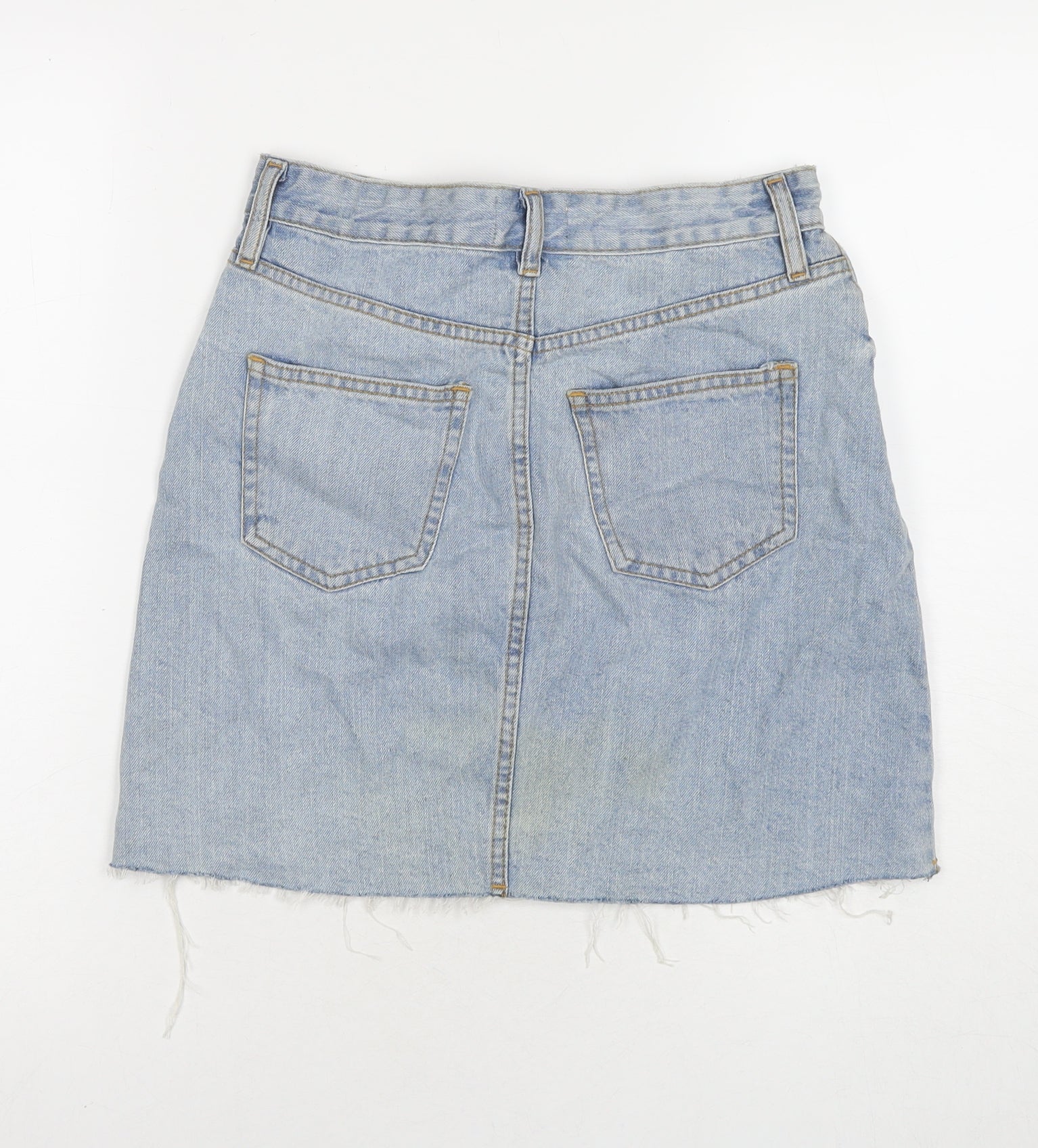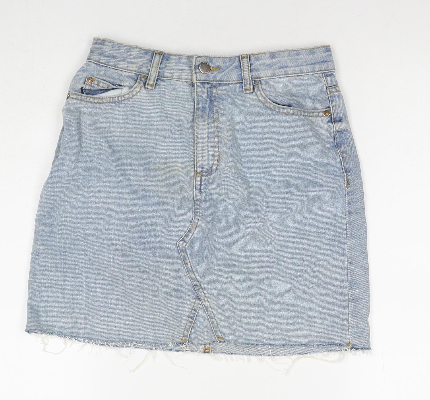 F&F Womens Blue Cotton A-Line Skirt Size 6 Zip