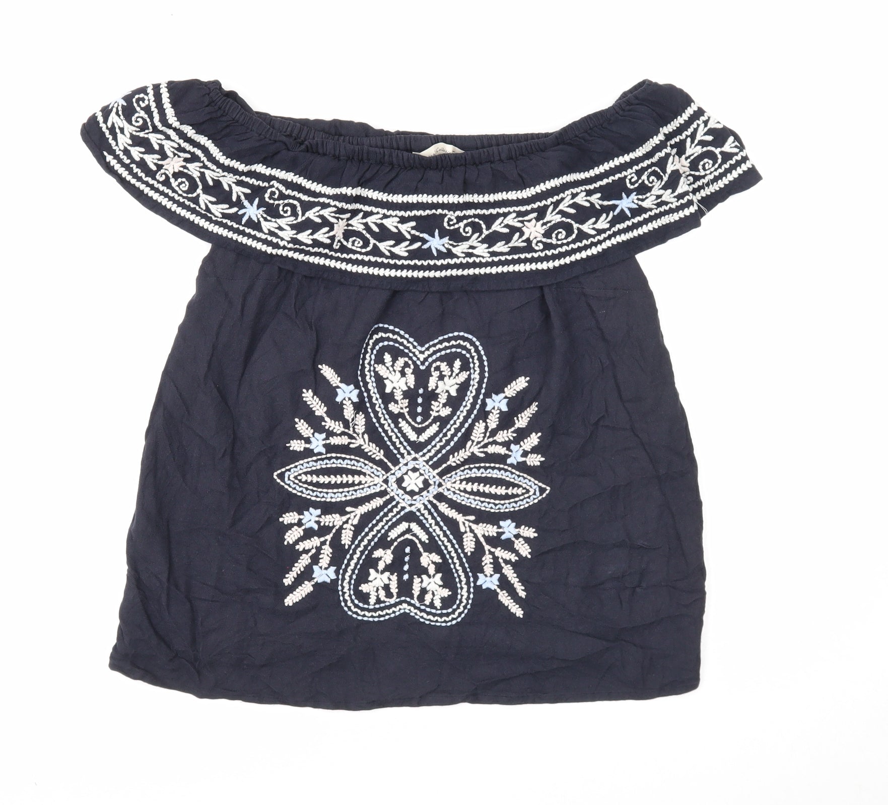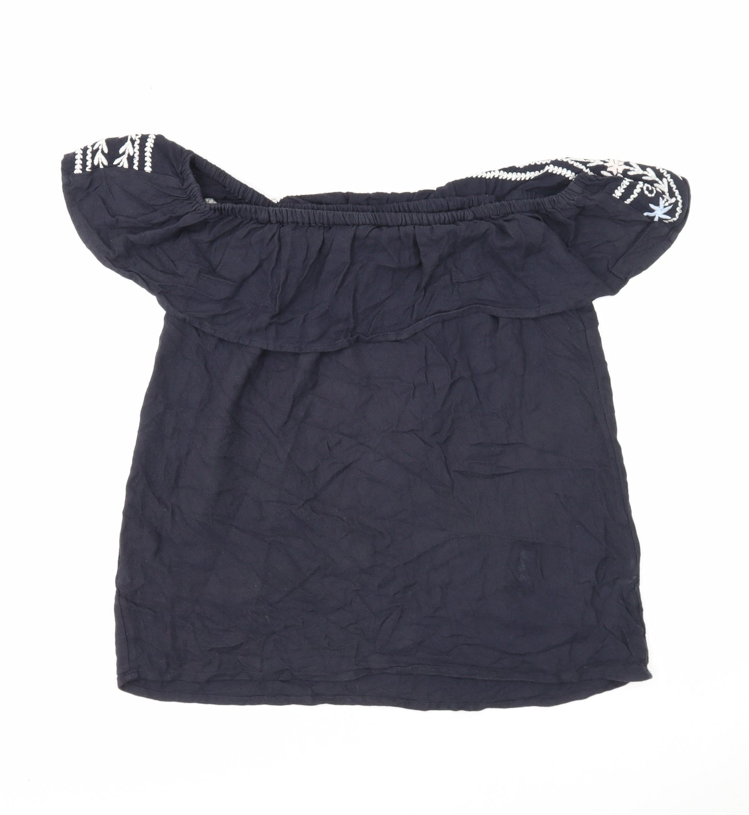 F&F Womens Blue Cotton Basic Blouse Size 8 Off the Shoulder