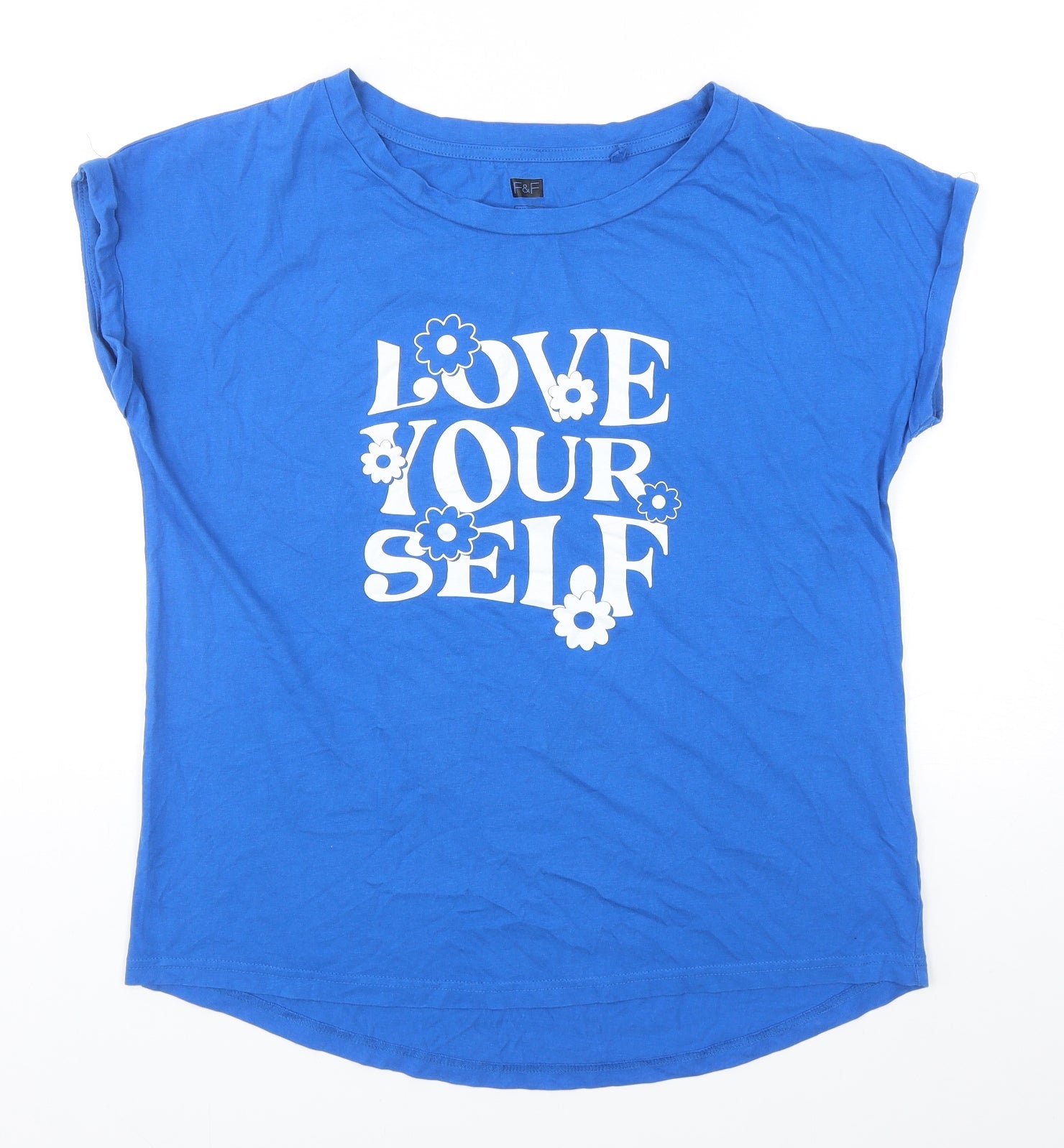 F&F Womens Blue Cotton Basic T-Shirt Size 14 Boat Neck - Love Yourself