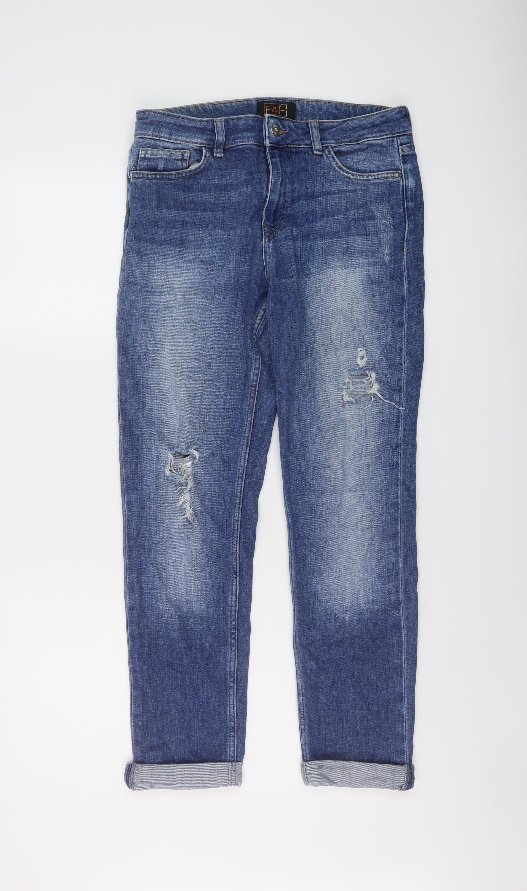 F&F Womens Blue Cotton Straight Jeans Size 10 L27 in Regular Button
