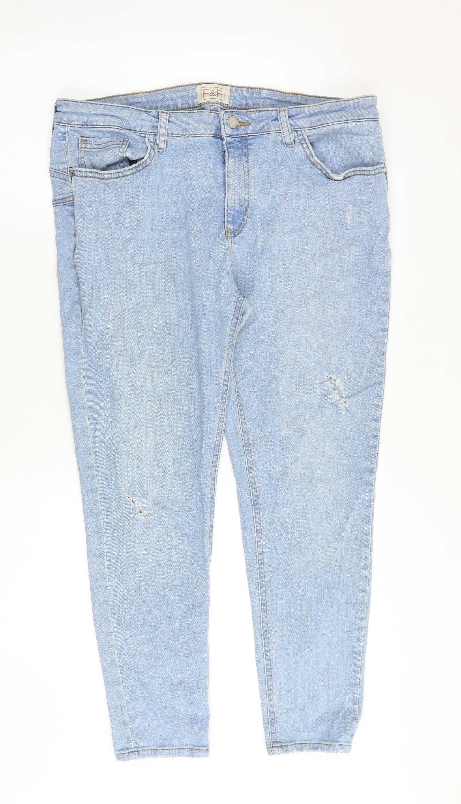 F&F Womens Blue Cotton Tapered Jeans Size 34 in Regular Zip