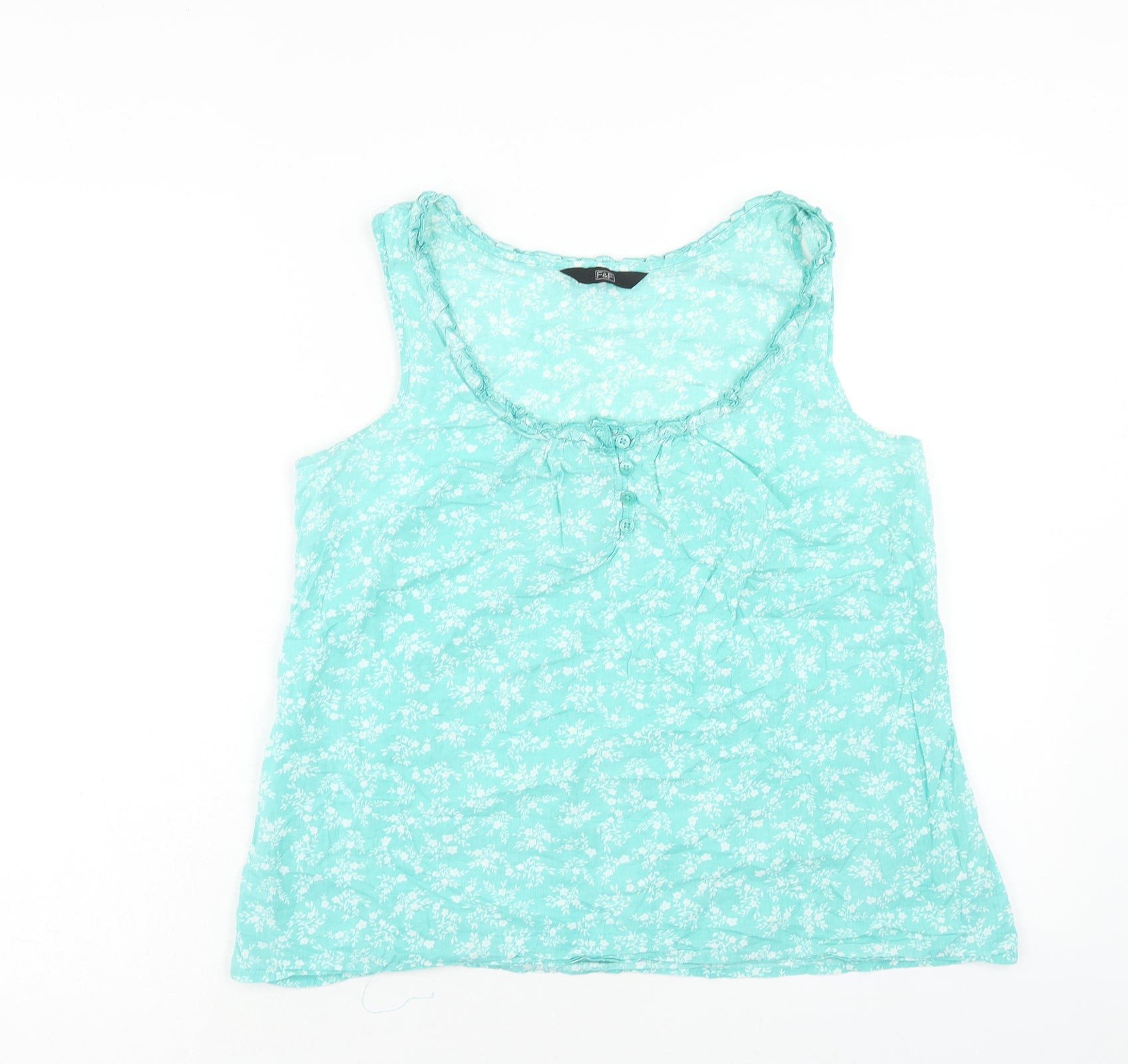 F&F Womens Blue Floral Cotton Basic Tank Size 12 Scoop Neck