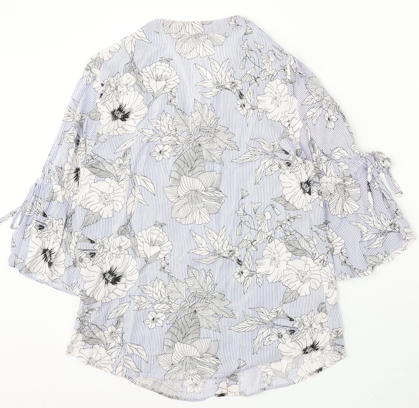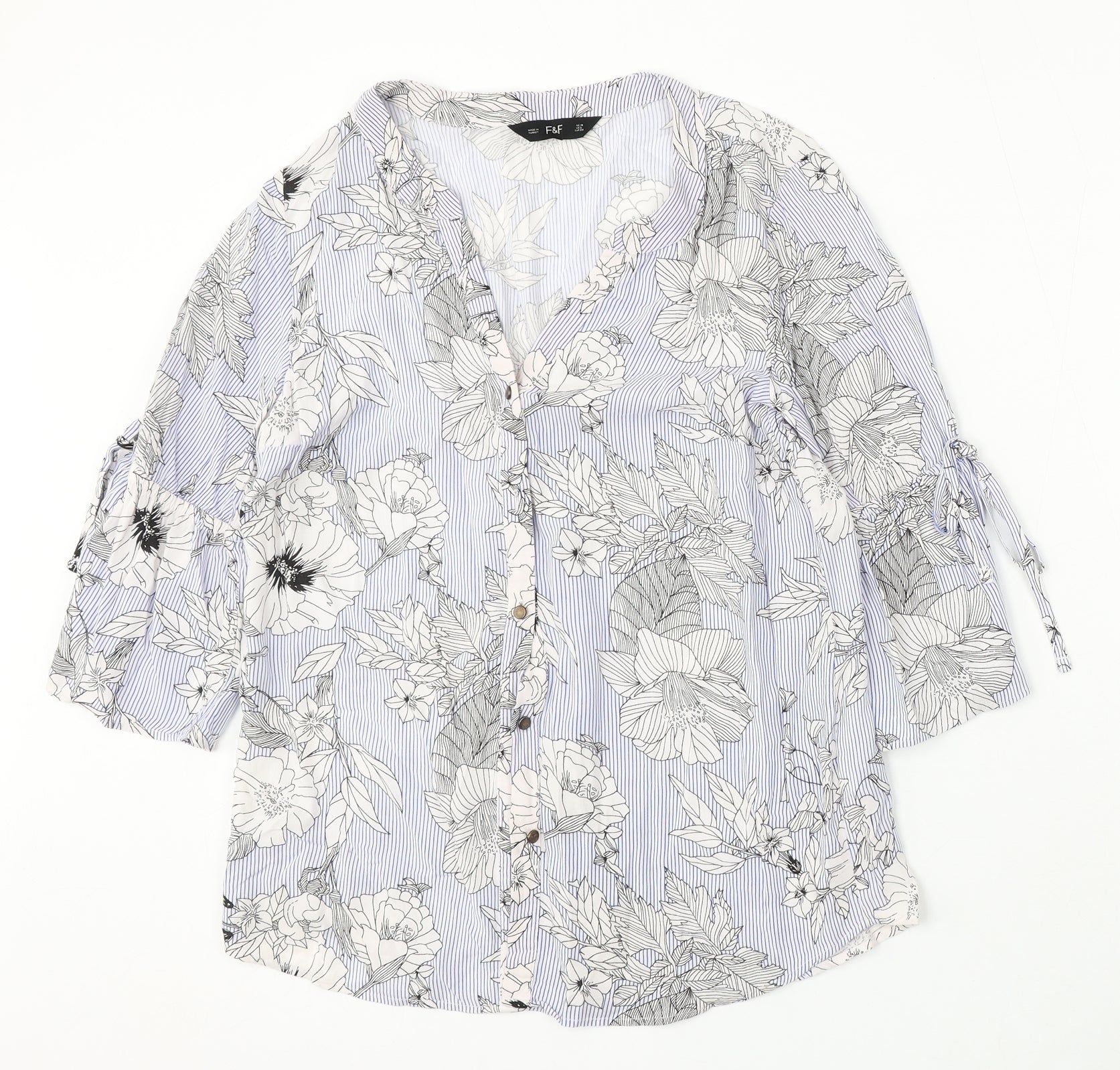 F&F Womens Blue Floral Viscose Basic Blouse Size 10 Round Neck
