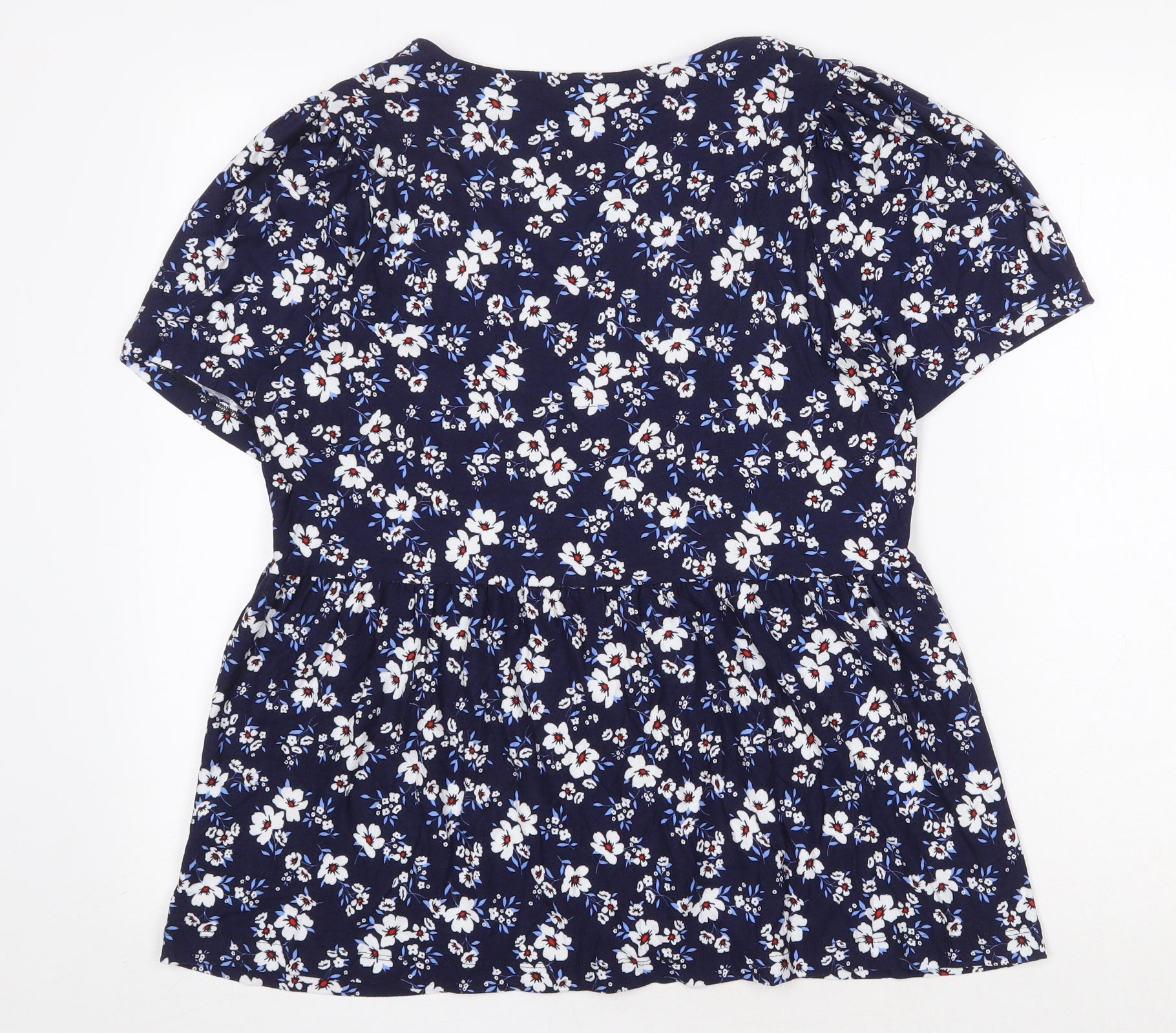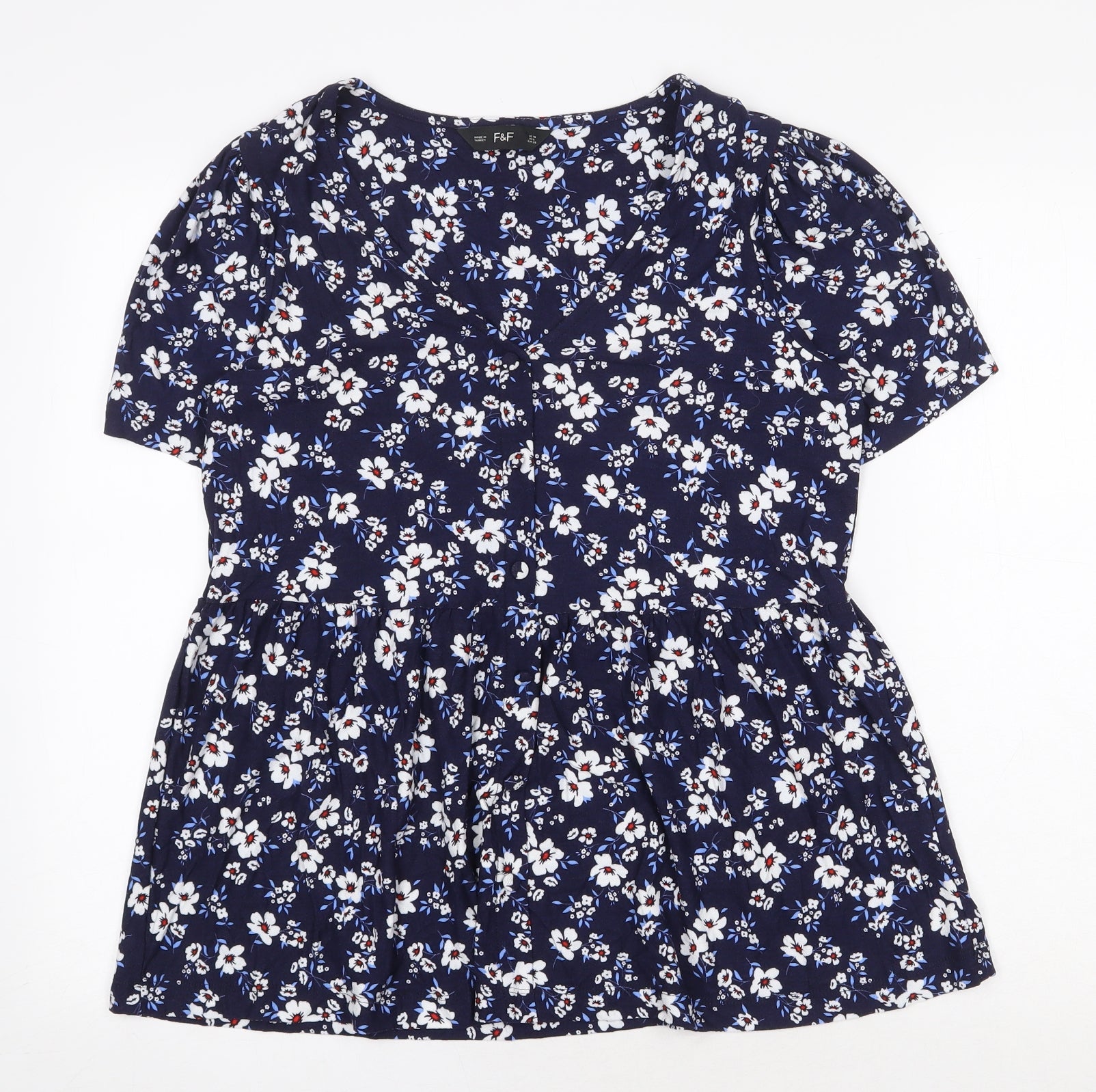 F&F Womens Blue Floral Viscose Basic Blouse Size 10 V-Neck