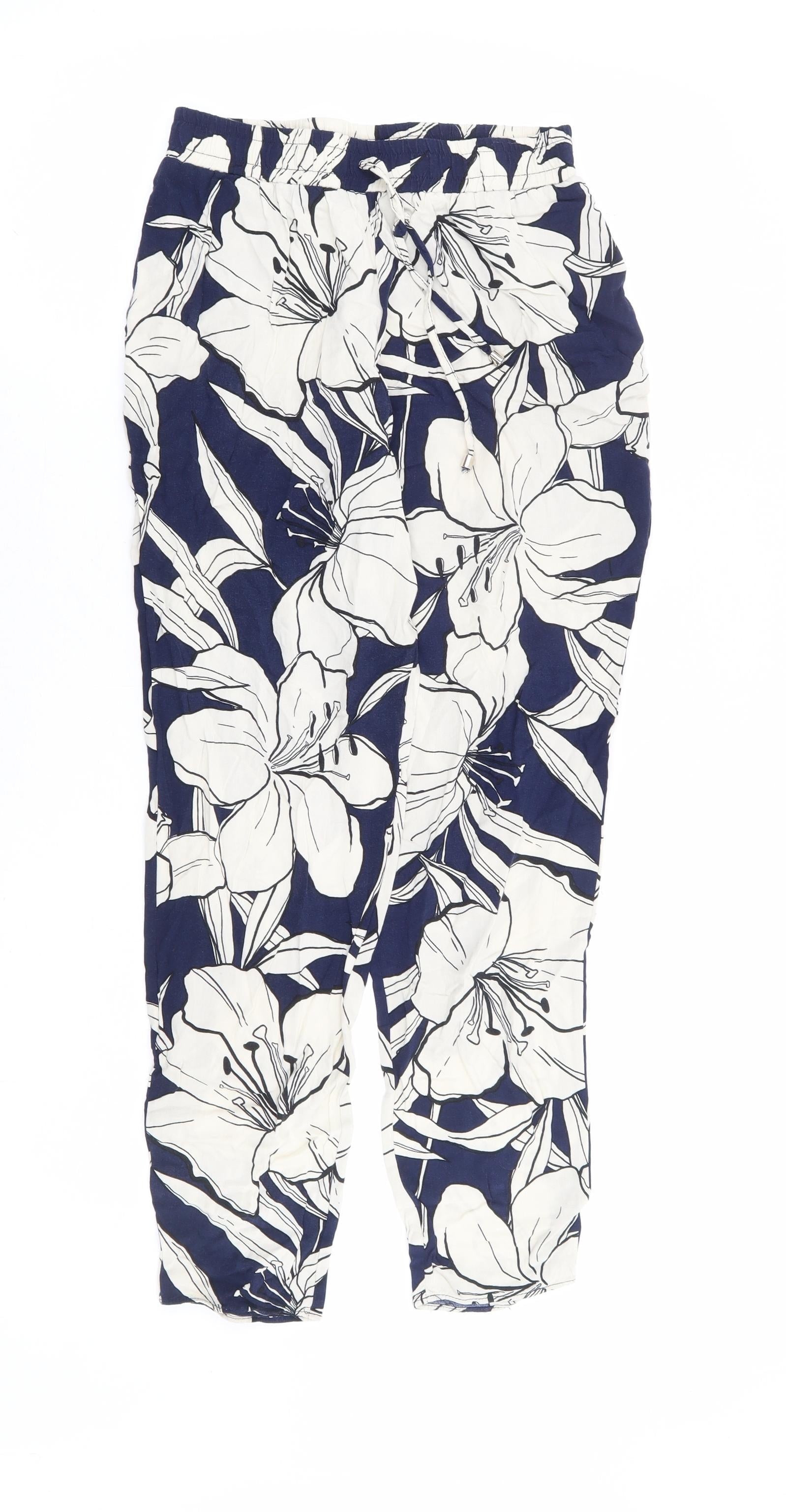 F&F Womens Blue Floral Viscose Harem Trousers Size 6 L25 in Regular Drawstring - Ankle Grazer