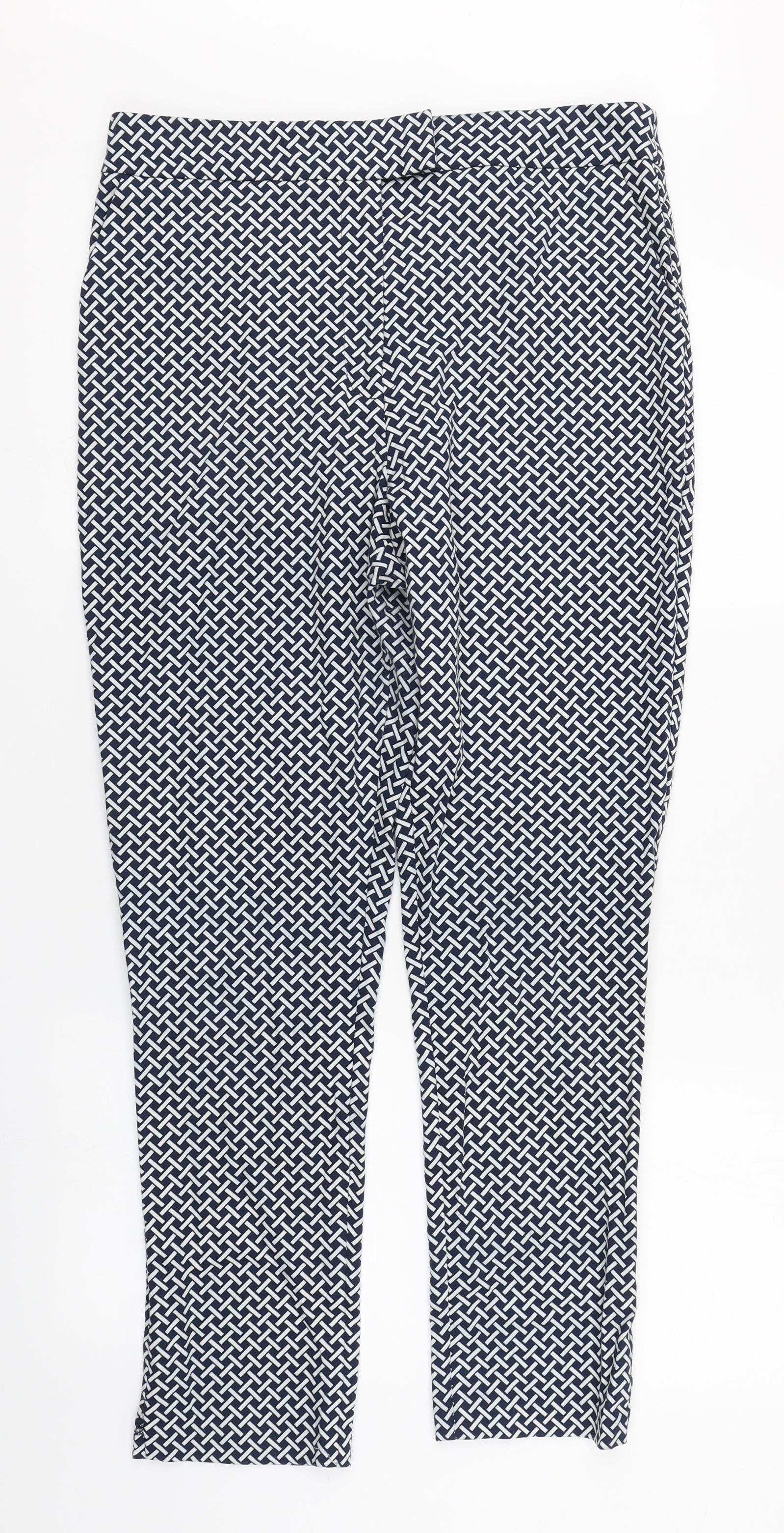 F&F Womens Blue Herringbone Cotton Carrot Trousers Size 12 L27 in Regular Zip