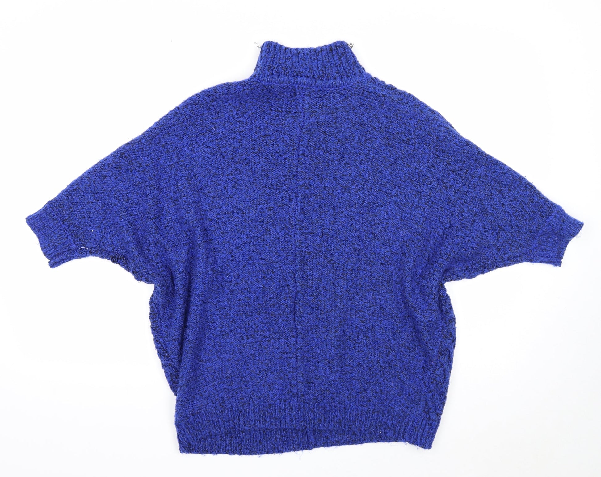 F&F Womens Blue High Neck Acrylic Pullover Jumper Size 6 - Batwing