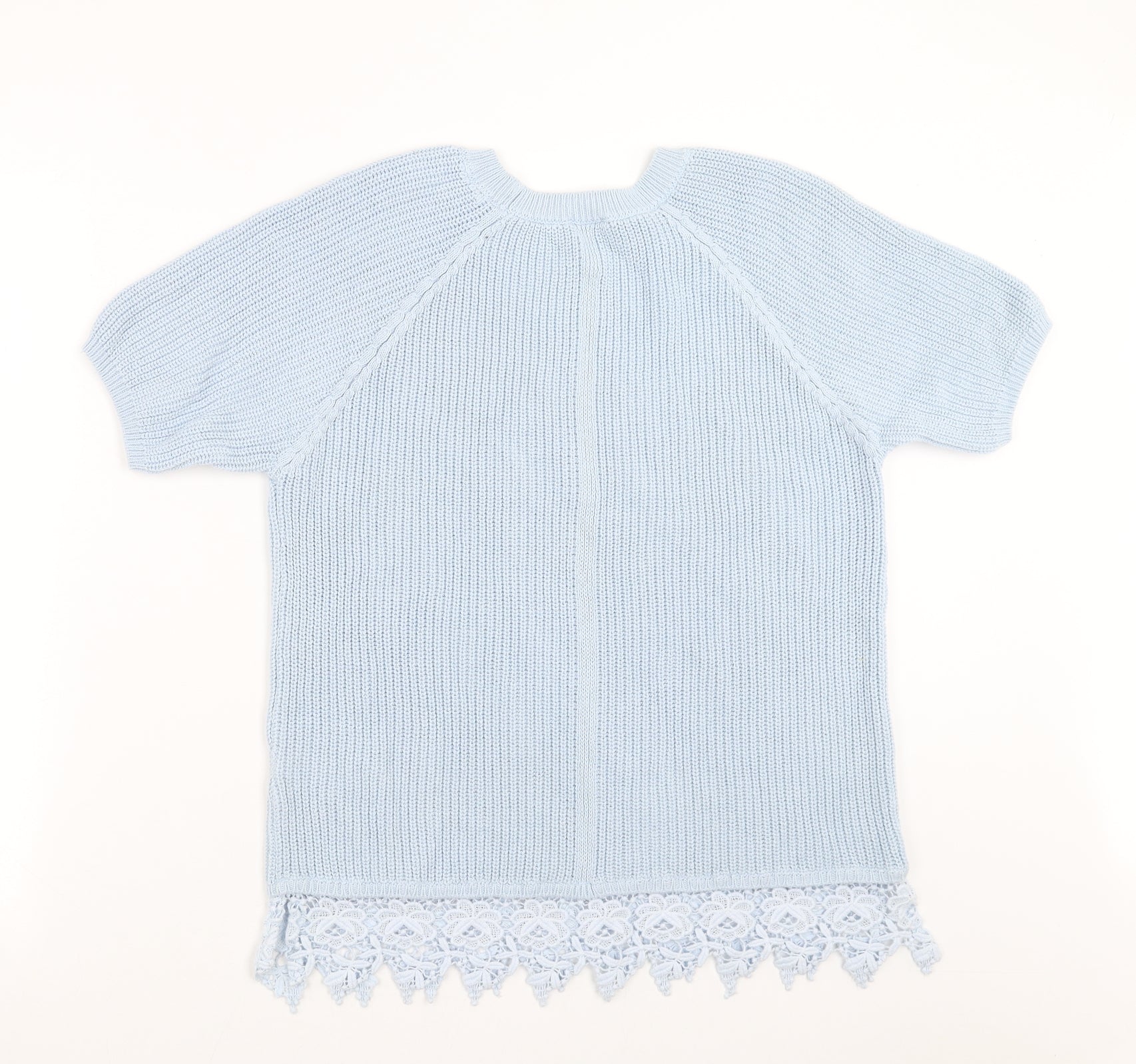 F&F Womens Blue Knit Pullover Jumper Size 12 - crochet hem