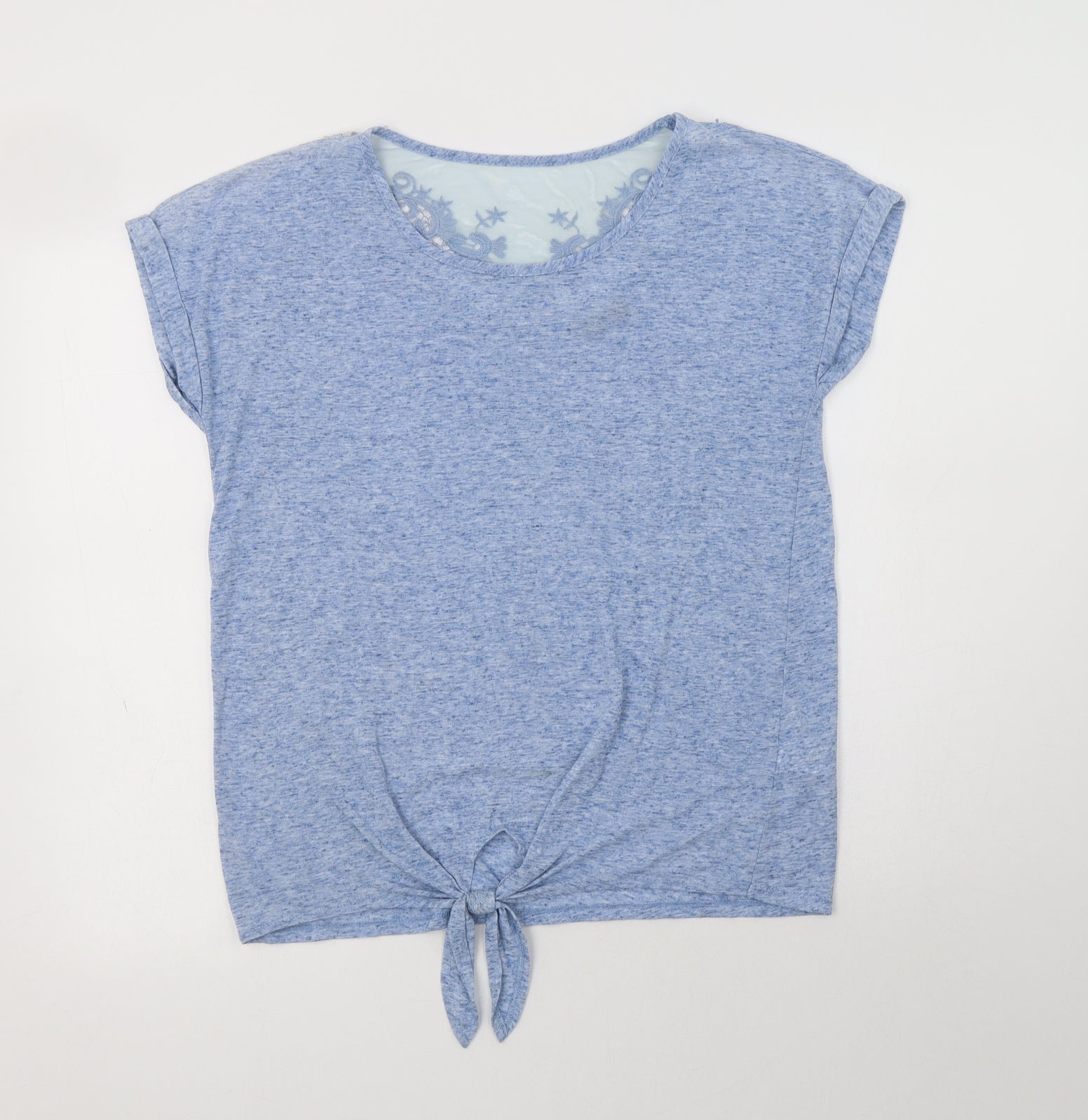 F&F Womens Blue Polyester Basic Blouse Size 6 Crew Neck - Lace Detail