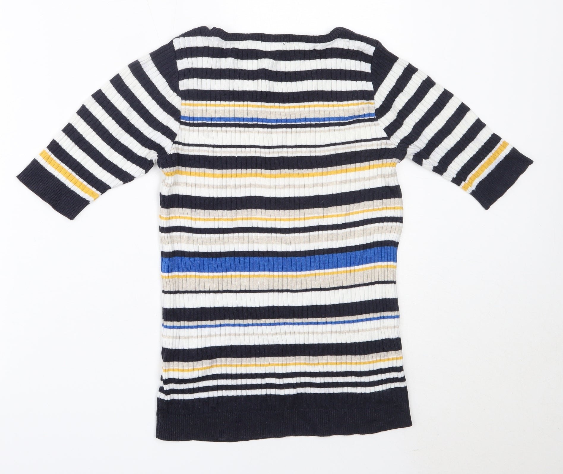 F&F Womens Blue Round Neck Striped Cotton Pullover Jumper Size 6