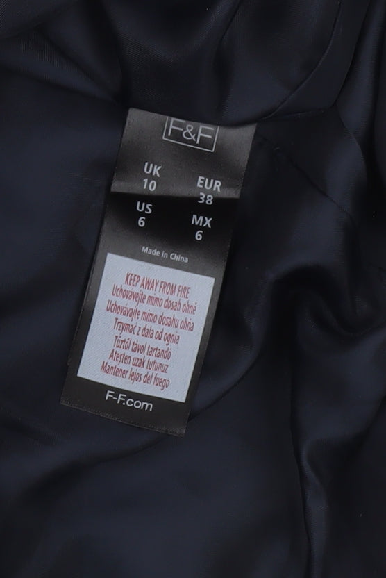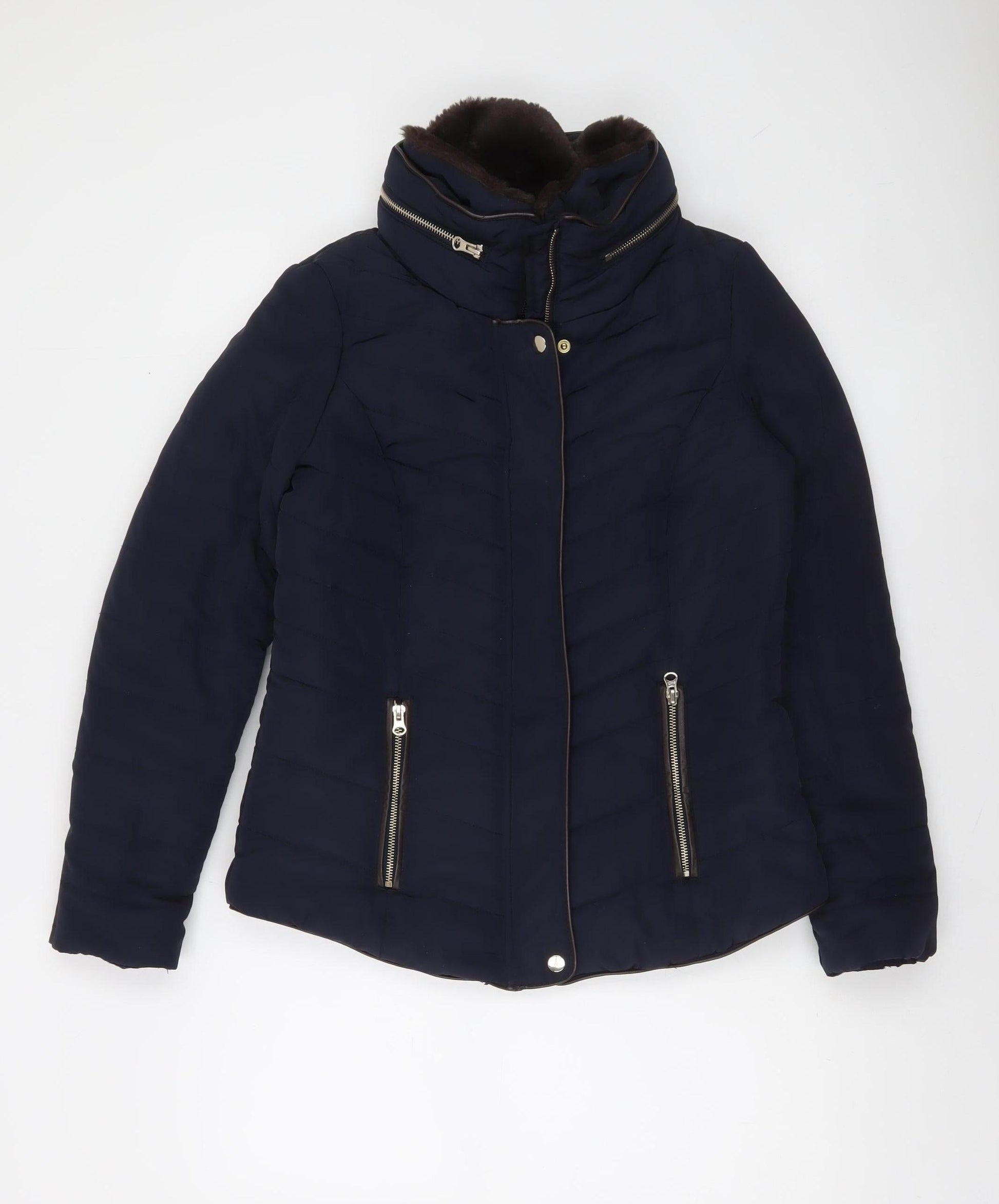 F&F Women's Blue Short Puffer Jacket Size 10 with Faux Fur Collar