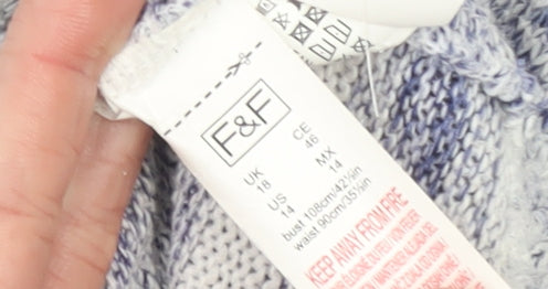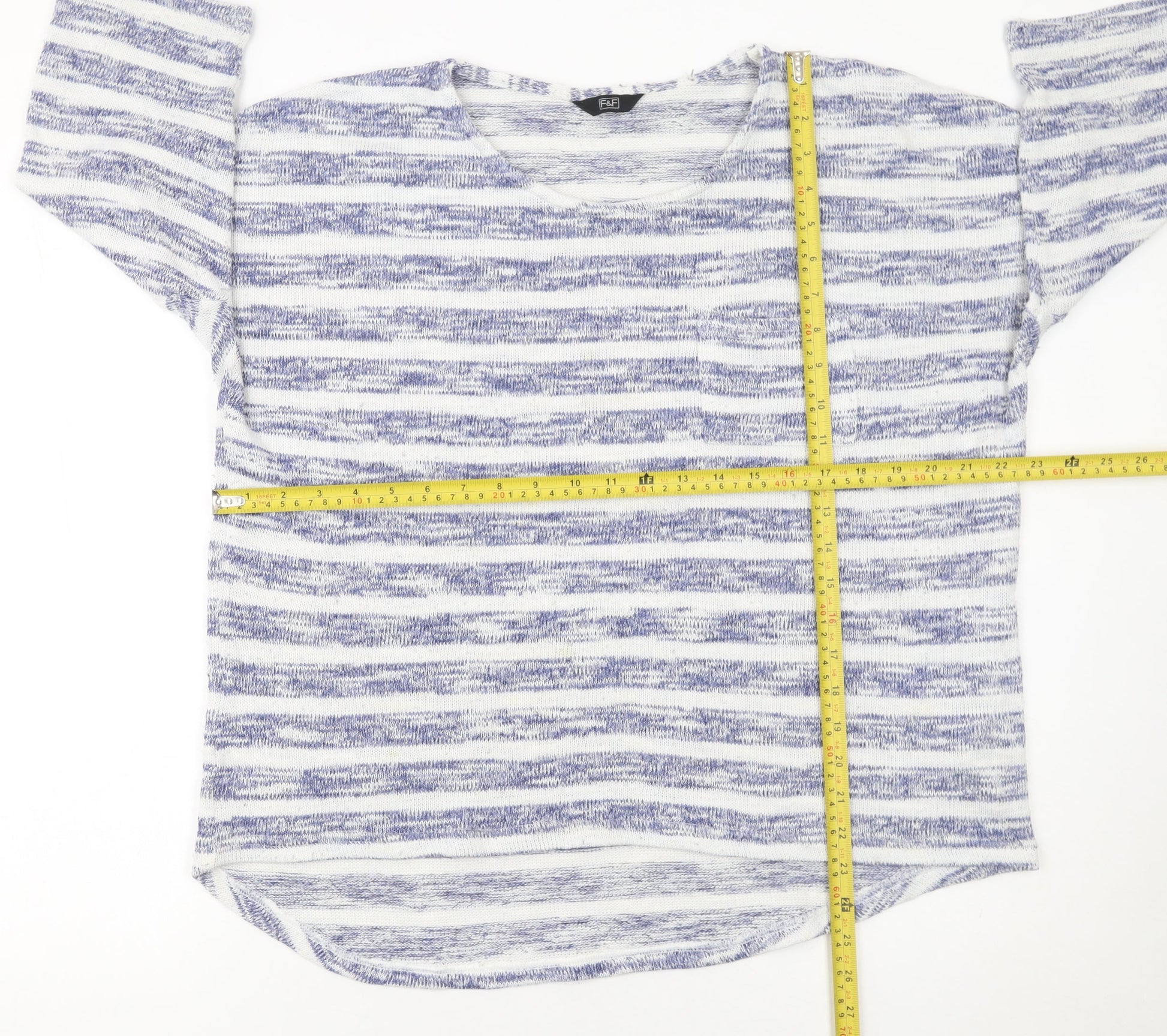 F&F Women's Blue Striped 3/4 Sleeve Pullover Jumper Size 18