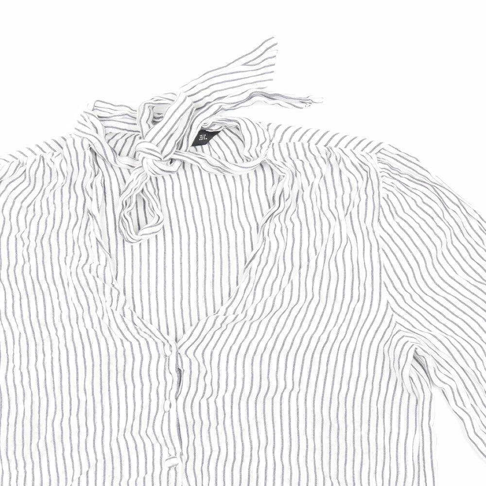 F&F Womens Blue Striped Basic Button-Up Size 12