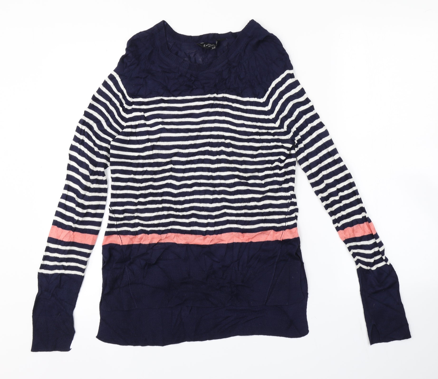 F&F Womens Blue Striped Pullover Jumper Size 10