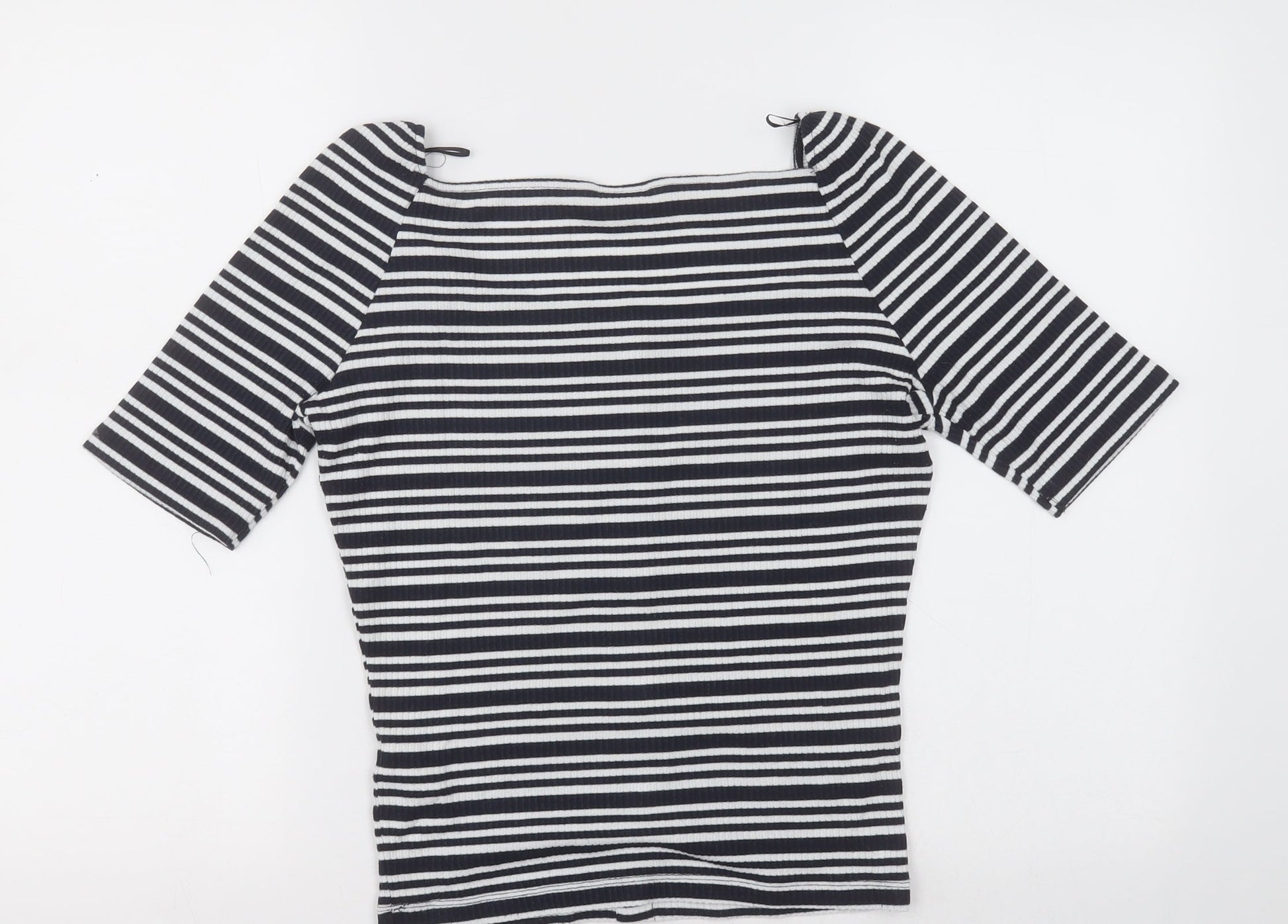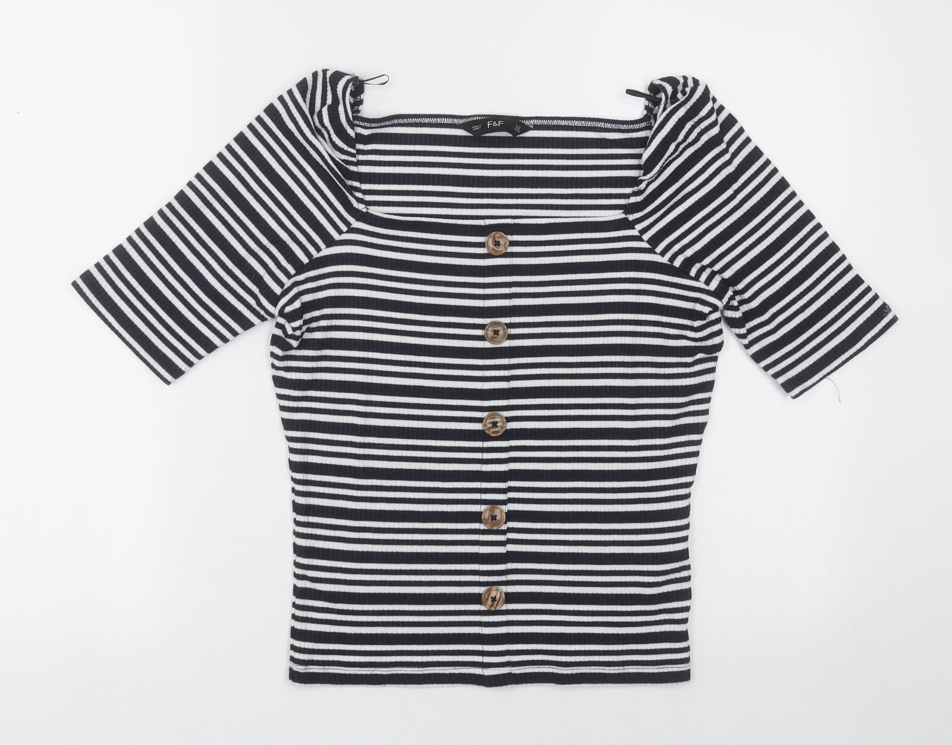 F&F Womens Blue Striped Viscose Basic T-Shirt Size 12 Square Neck