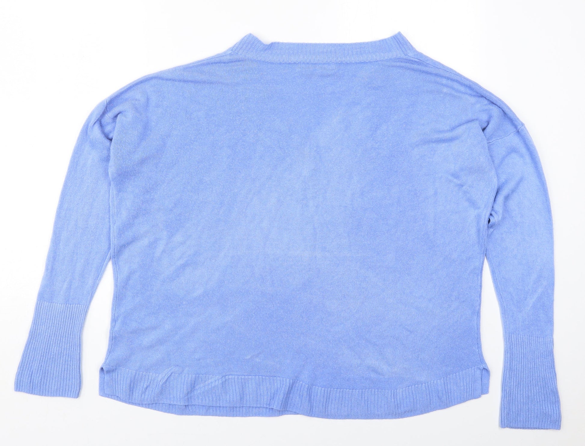 F&F Womens Blue V-Neck Acrylic Pullover Jumper Size 16