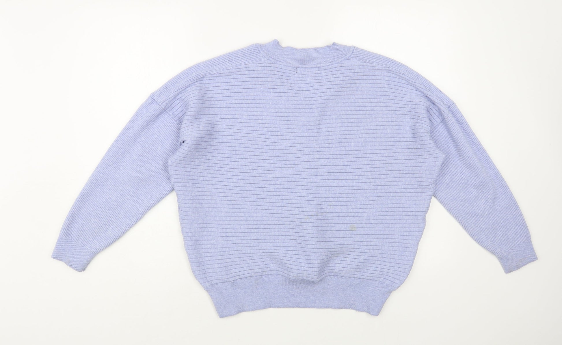 F&F Womens Blue V-Neck Acrylic Pullover Jumper Size 12