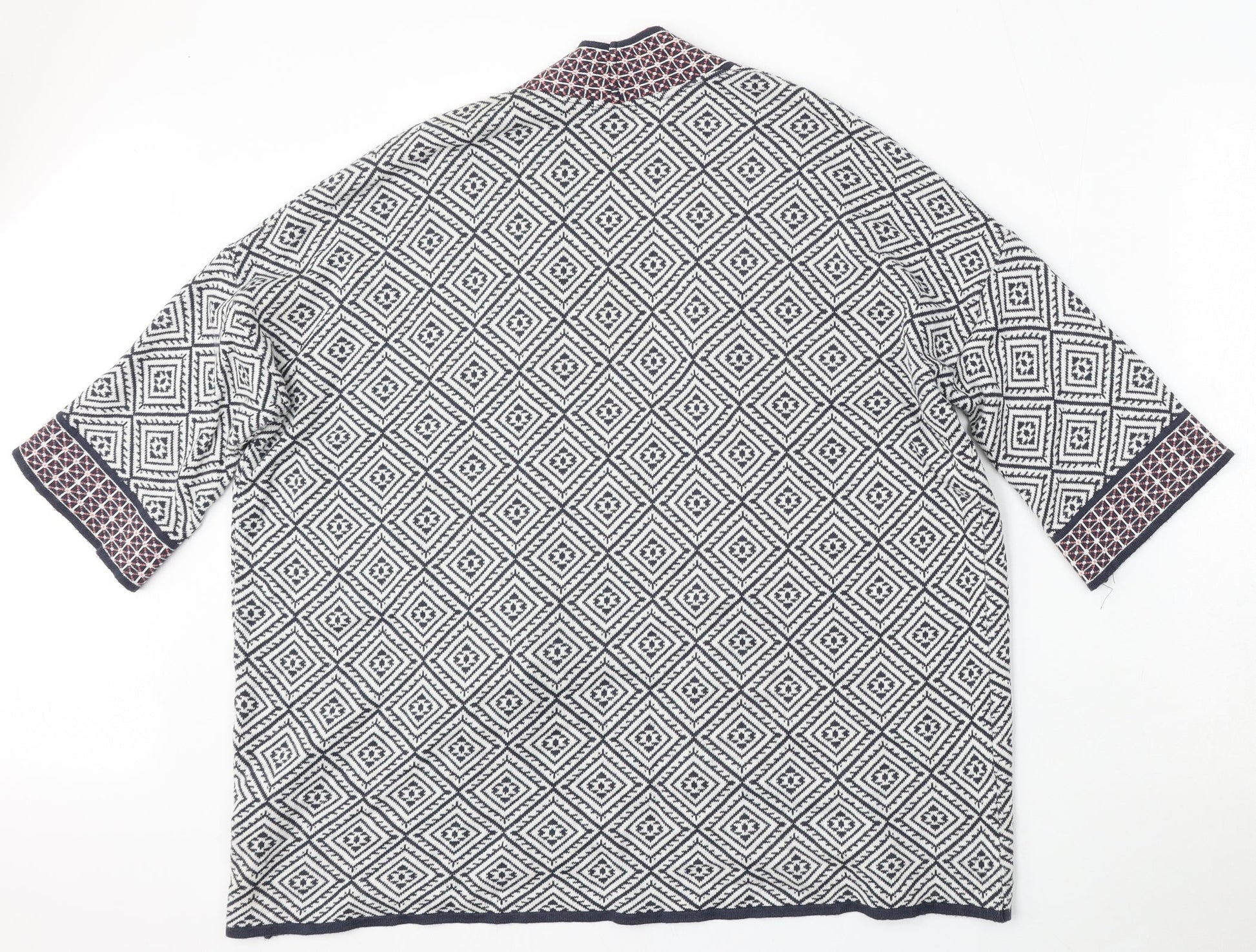 F&F Womens Blue V-Neck Geometric Polyester Cardigan Jumper Size L