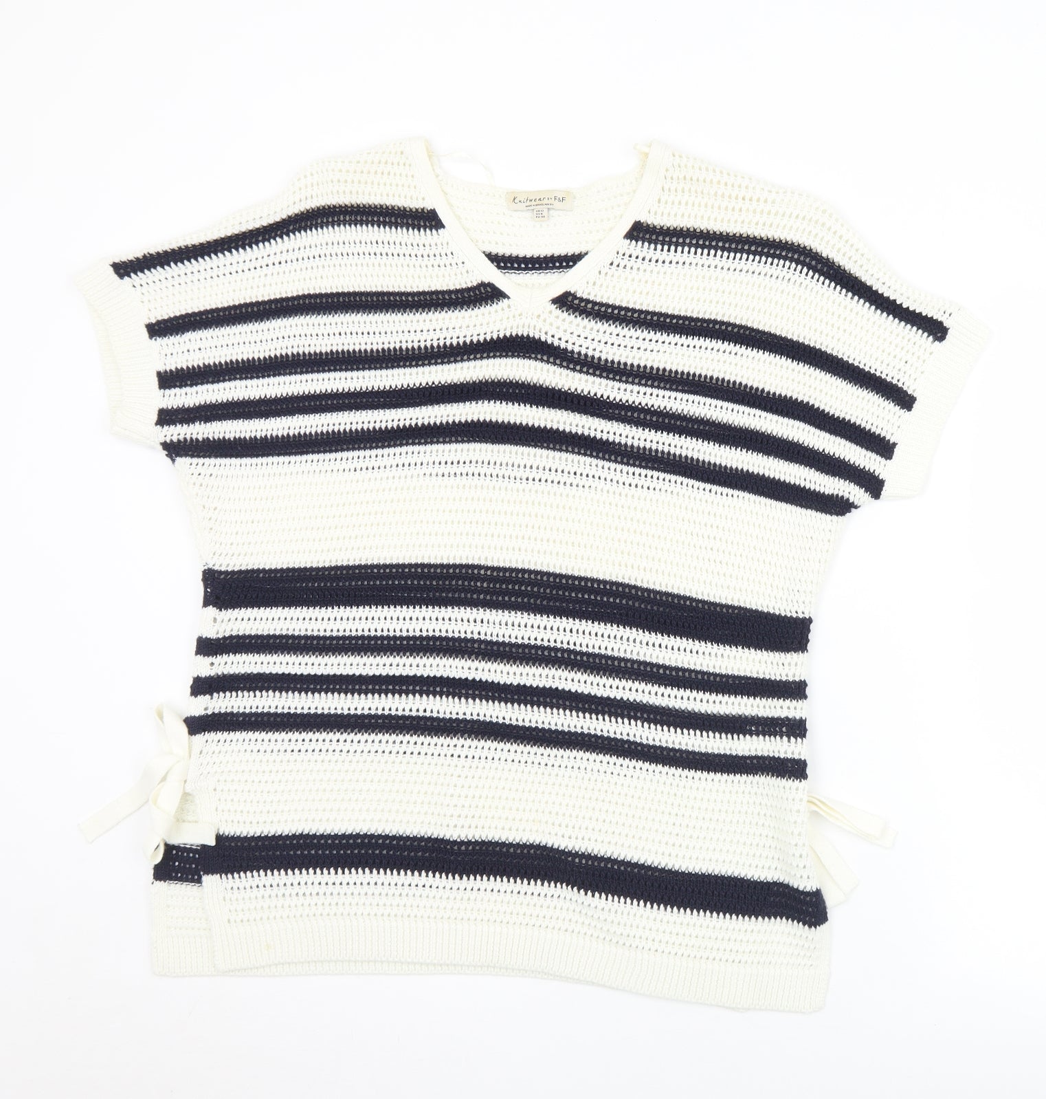 F&F Womens Blue V-Neck Striped Acrylic Pullover Jumper Size 12