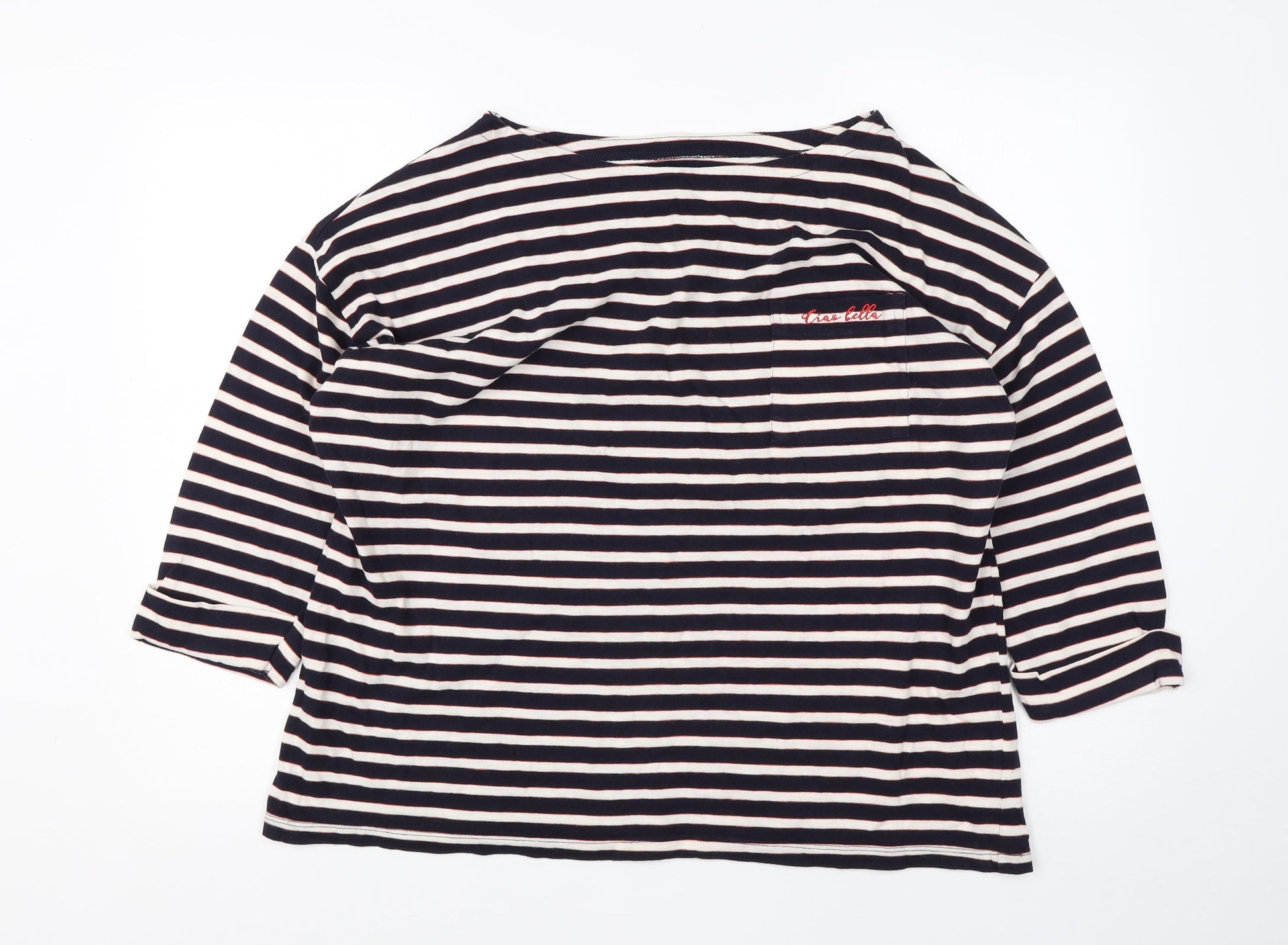 F&F Womens Blue V-Neck Striped Cotton Pullover Jumper Size 18