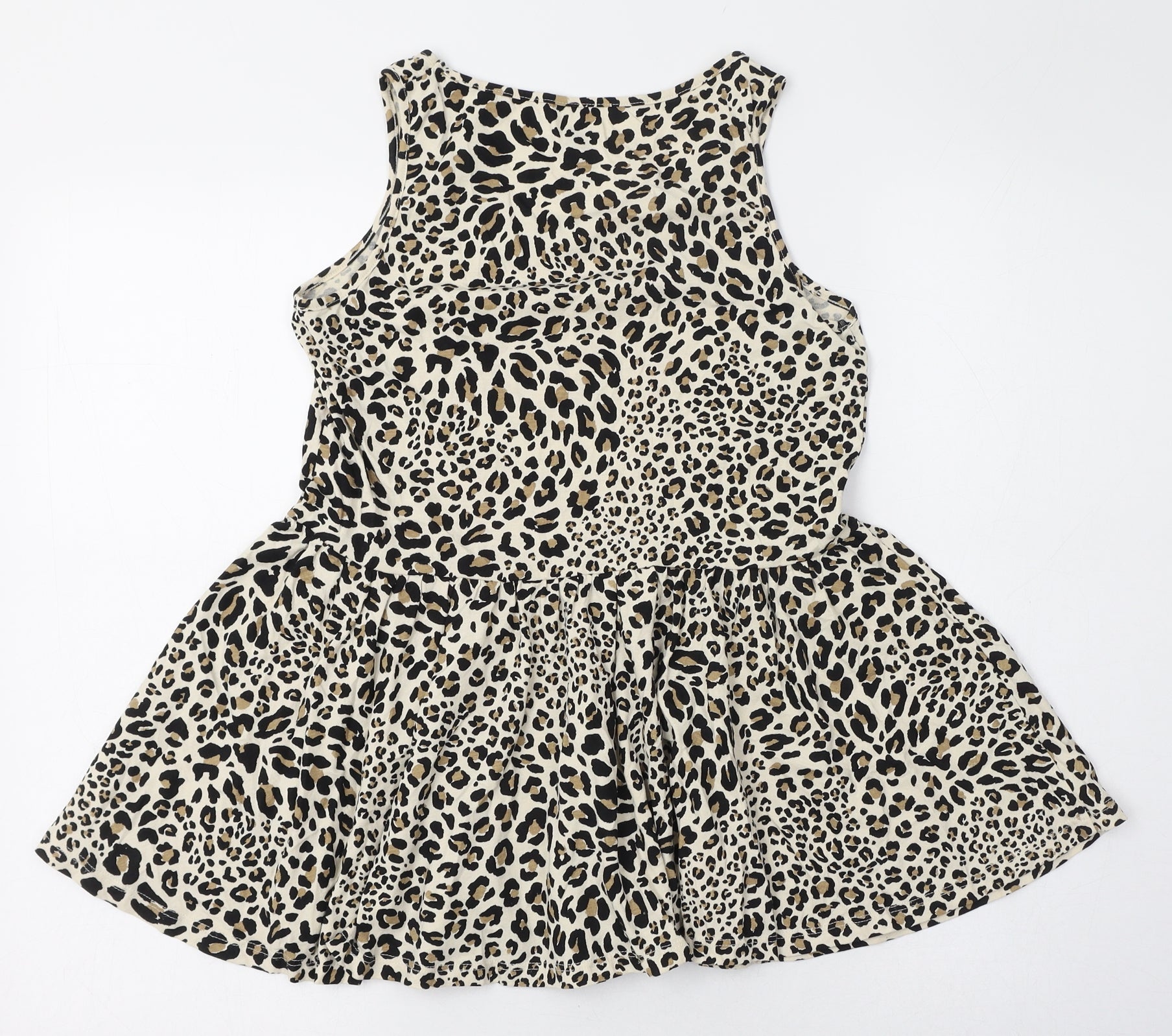F&F Womens Brown Animal Print 100% Cotton Basic Tank Size 6 Round Neck