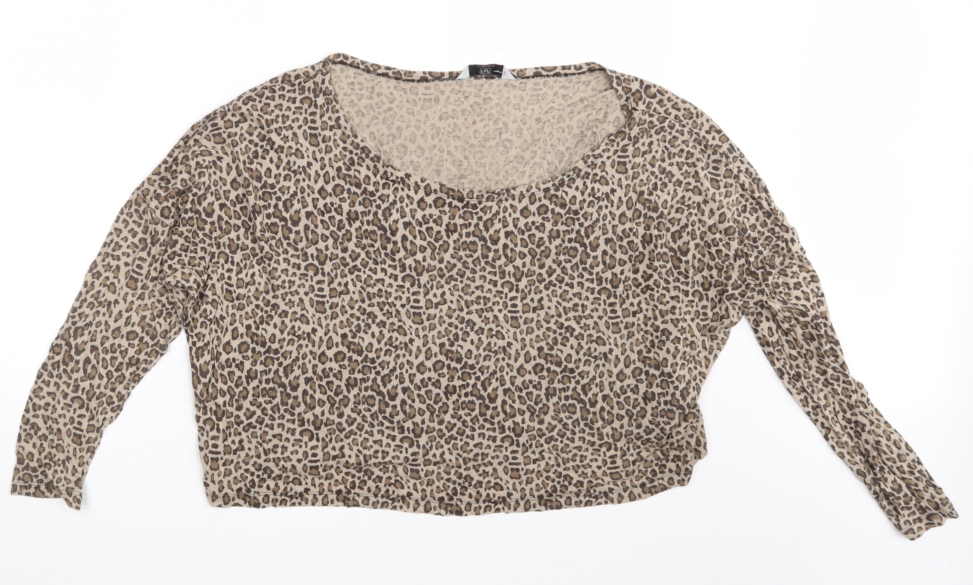 F&F Womens Brown Animal Print Basic T-Shirt Size 14
