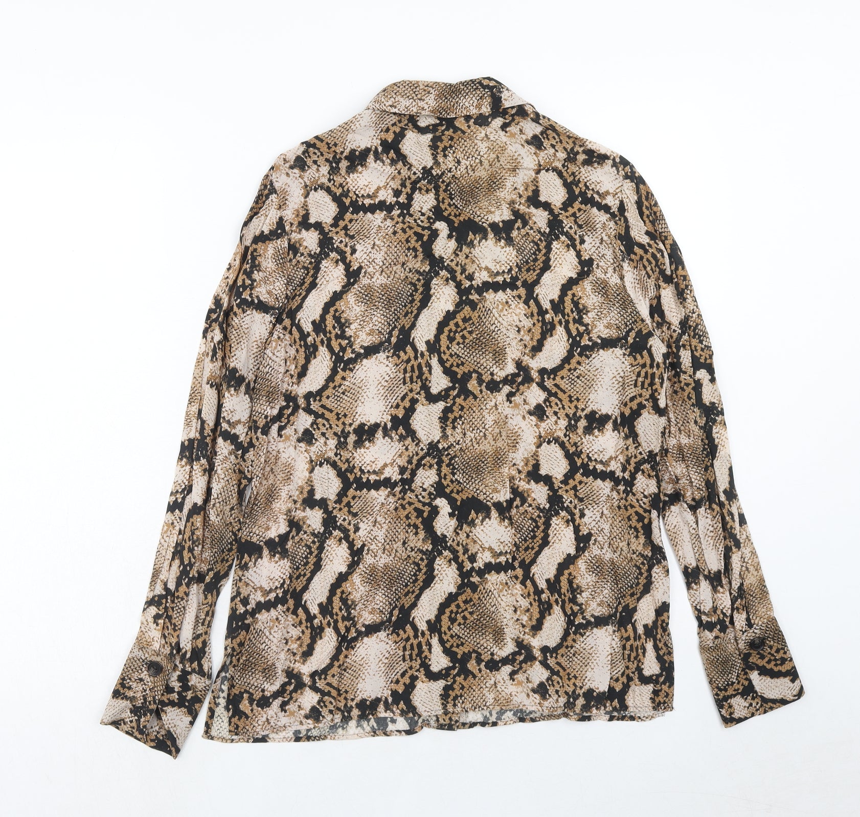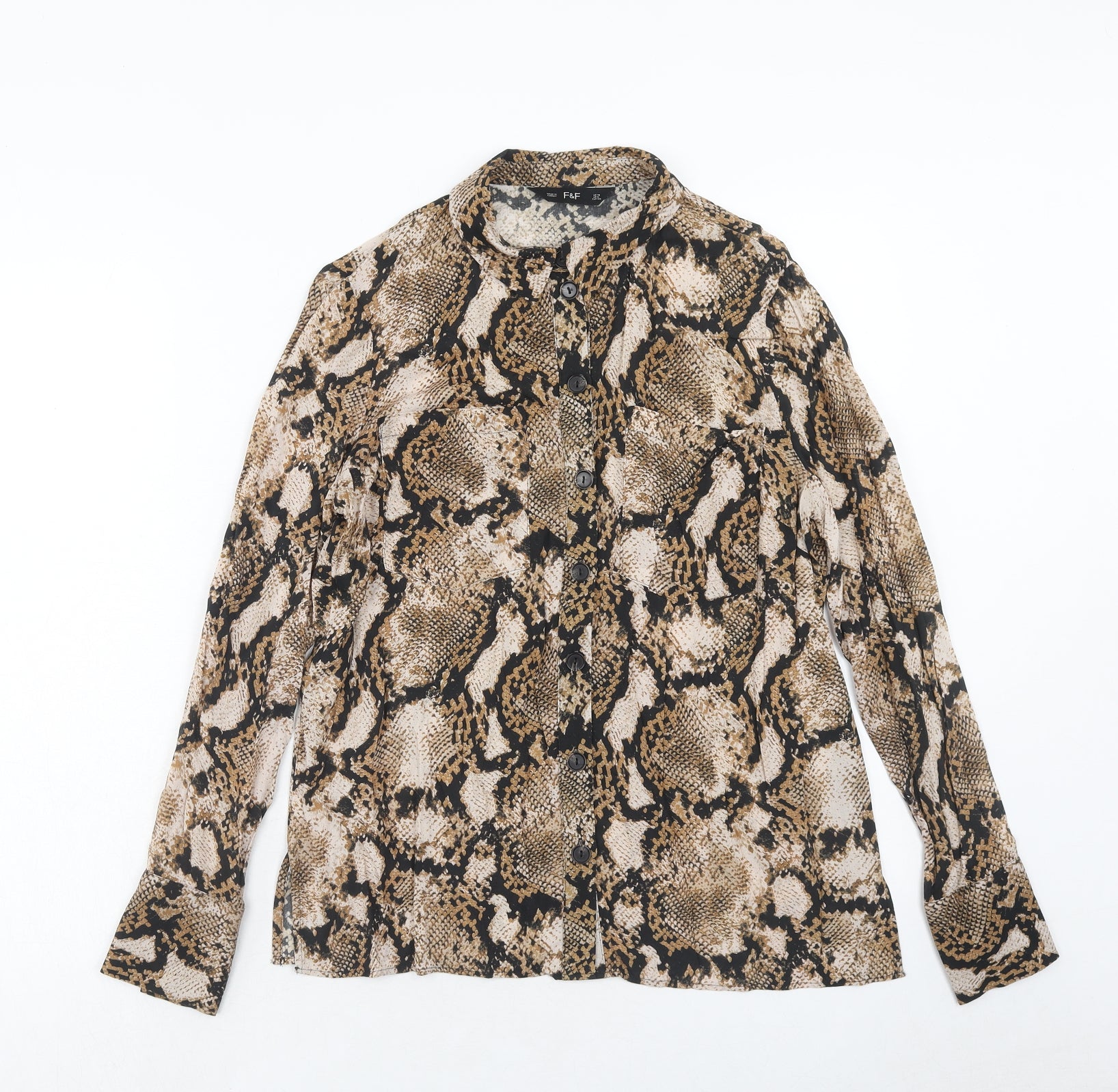 F&F Womens Brown Animal Print Viscose Basic Button-Up Size 10 Collared - Snakeskin Pattern