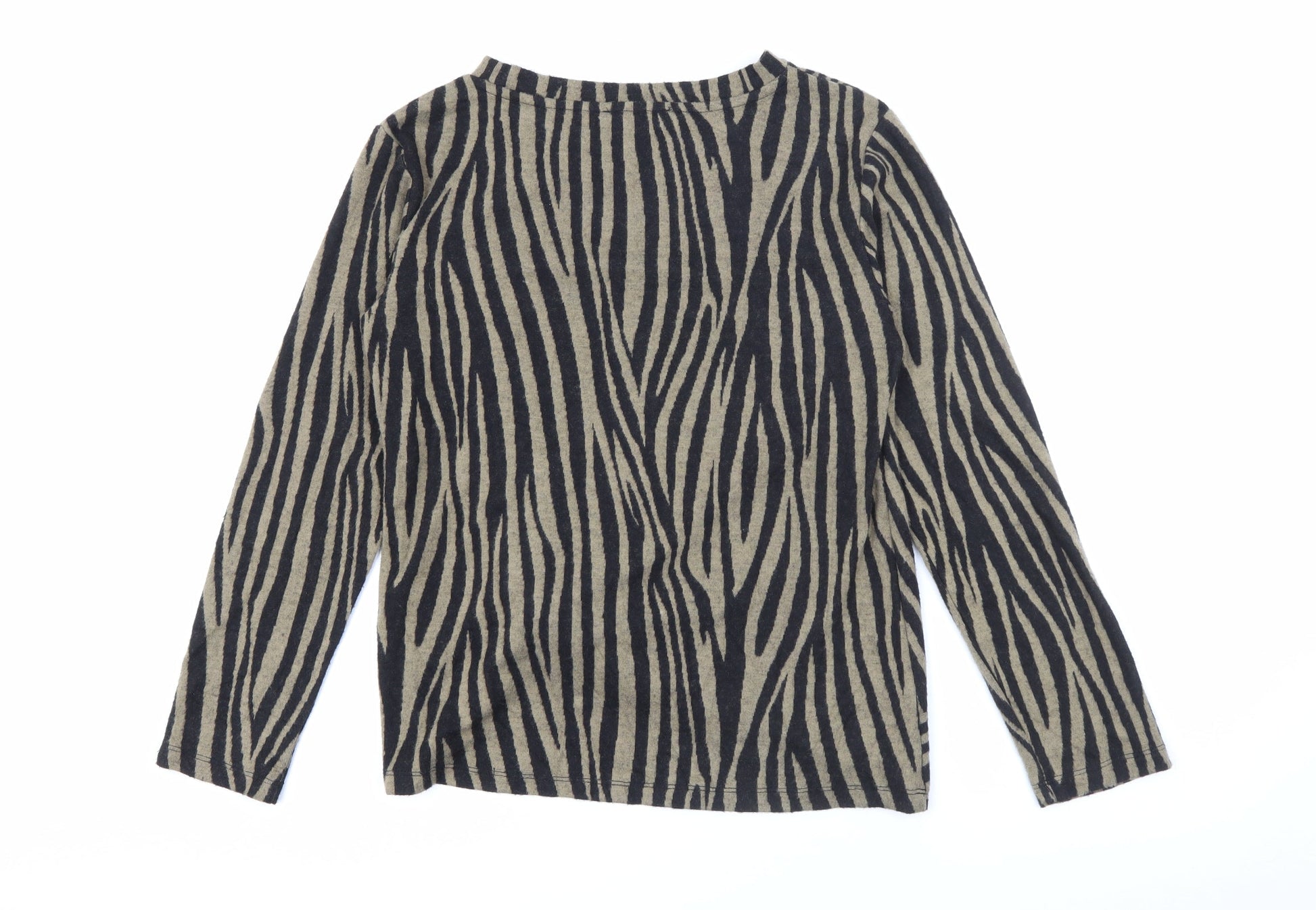 F&F Womens Brown Crew Neck Geometric Polyester Pullover Jumper Size 10