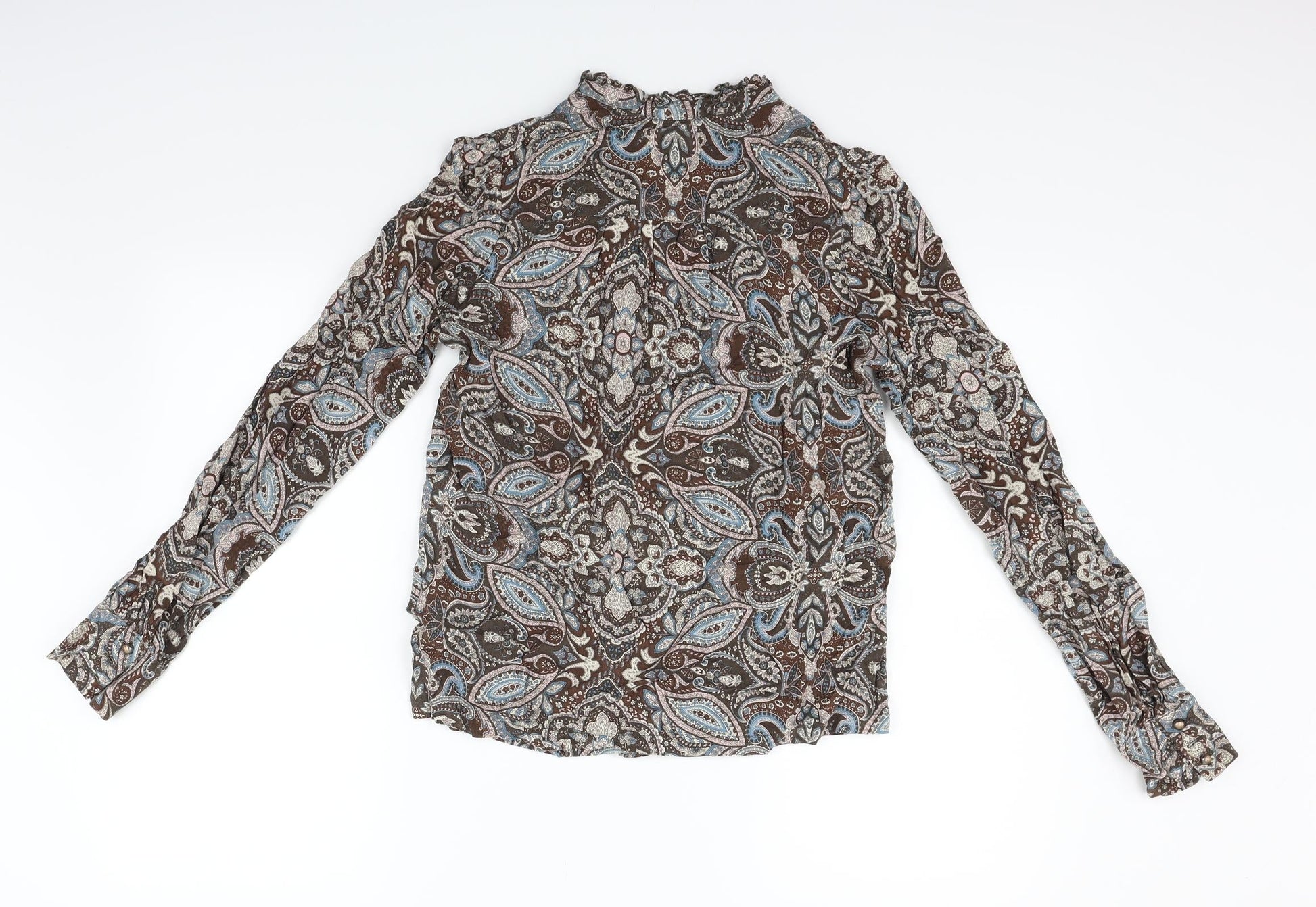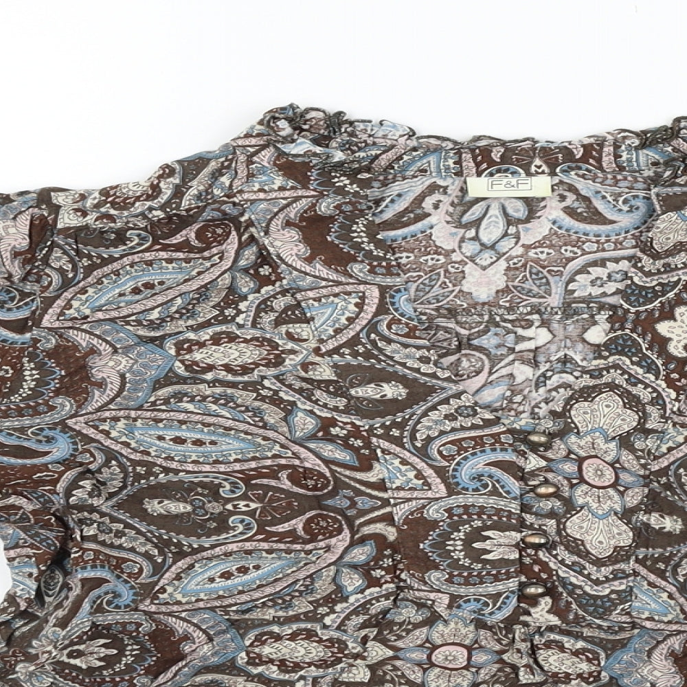 F&F Womens Brown Geometric Basic Button-Up Size 8