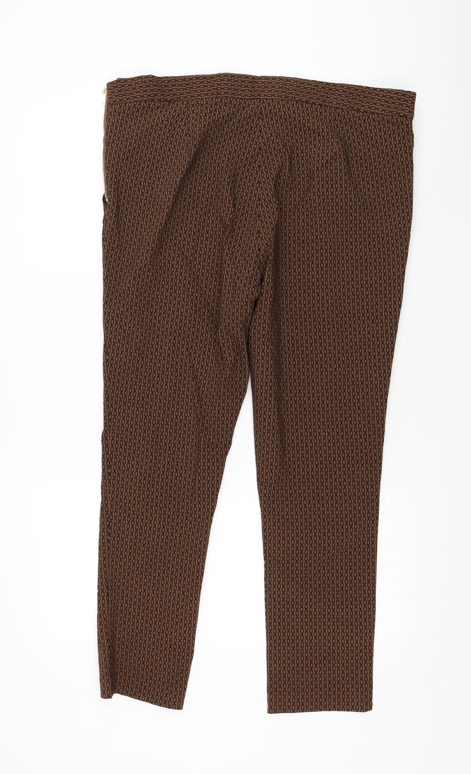 F&F Womens Brown Geometric Viscose Carrot Trousers Size 20 L26 in Regular Zip